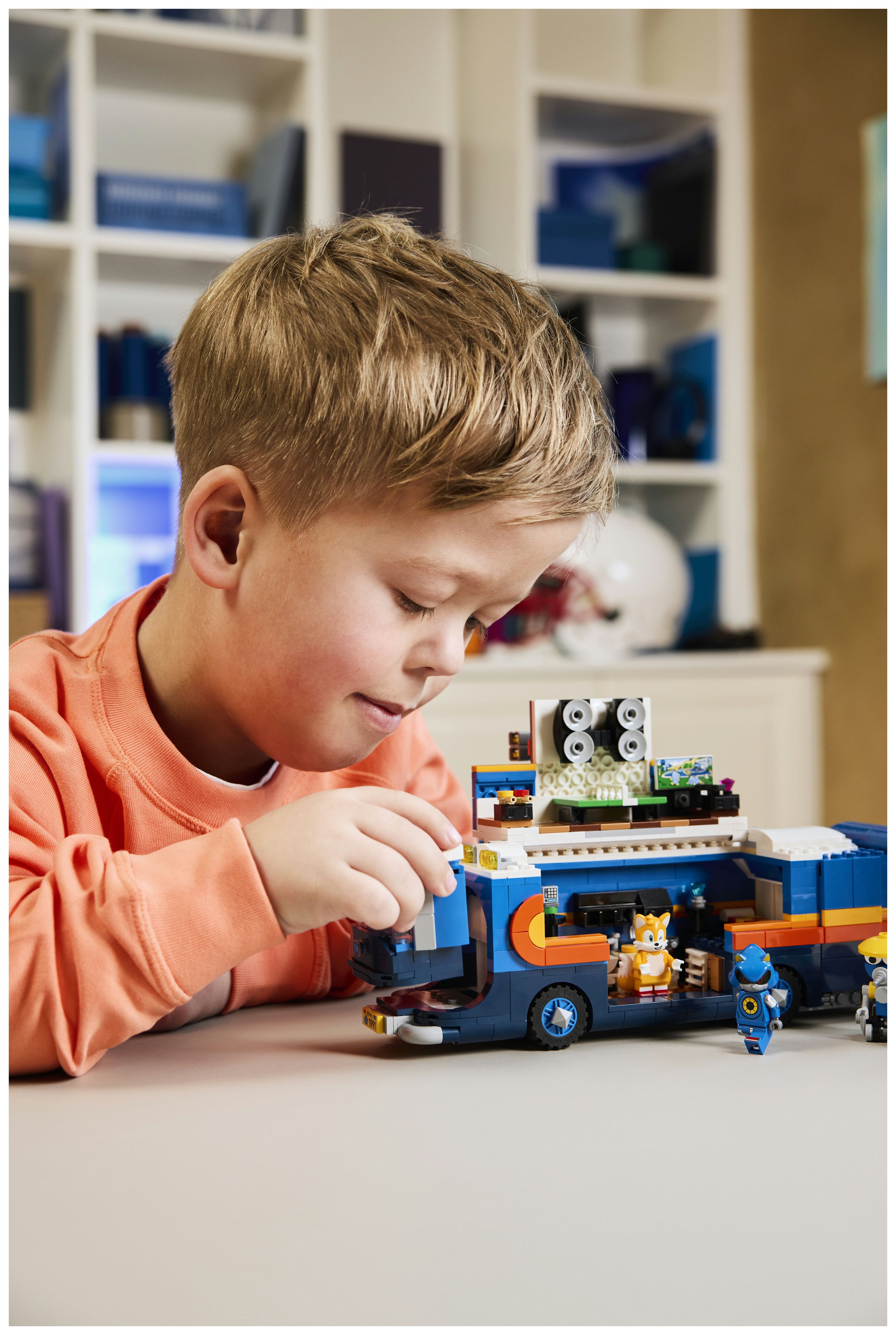 Kreative Funktionen: Dieser LEGO® Sonic Truck hat eine abnehmbare vordere Kabine mit Platz für 2 Minifiguren, eine bewegliche Kanone und eine aufklappbare Seitenwand, die Zugang zum Wohnbereich und anderen Spieloptionen bietet