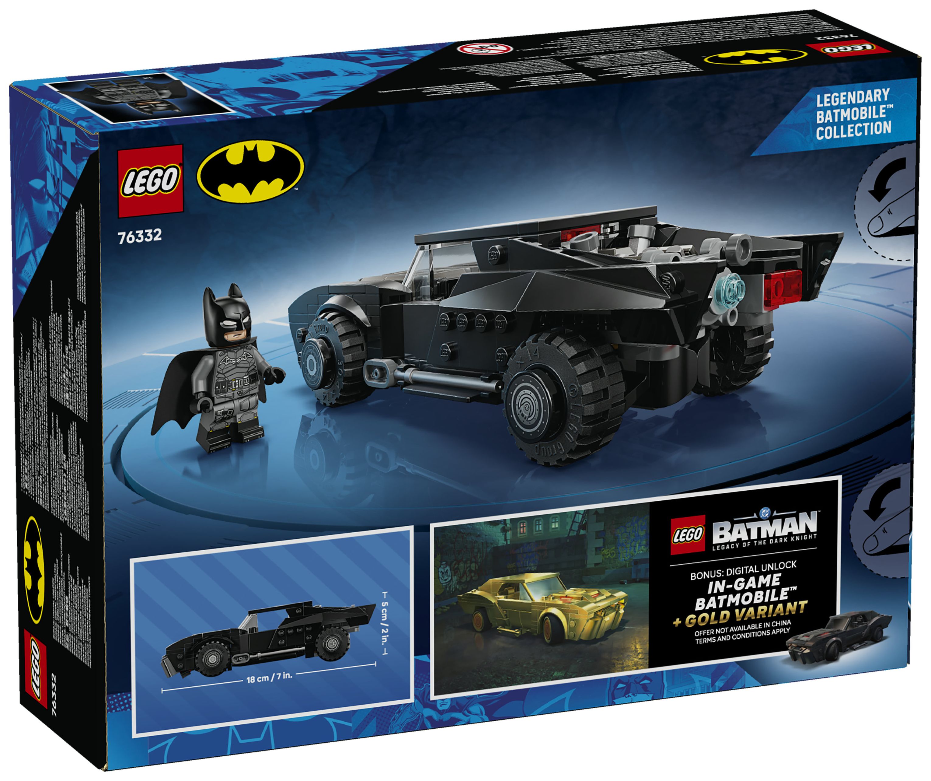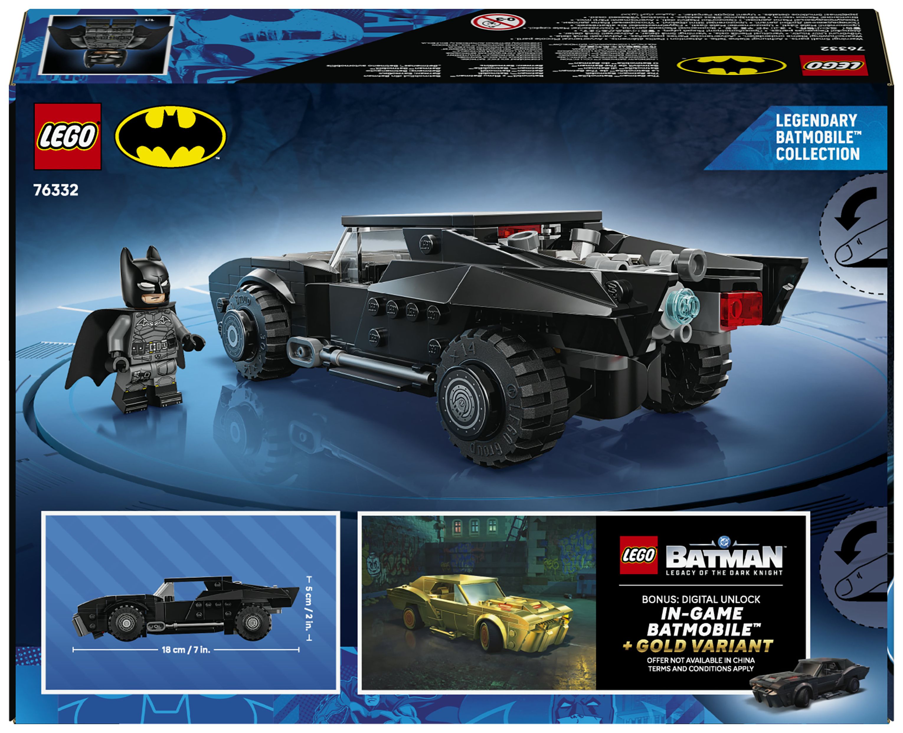 Toller Bonus – die digitale Freischaltfunktion: Schalte The Batman Batmobil sowie eine goldene Version des Batmobils im Videospiel LEGO Batman – Legacy of the Dark Knight™ frei. Scanne den QR-Code auf der Bauanleitung und befolge die Anweisungen.