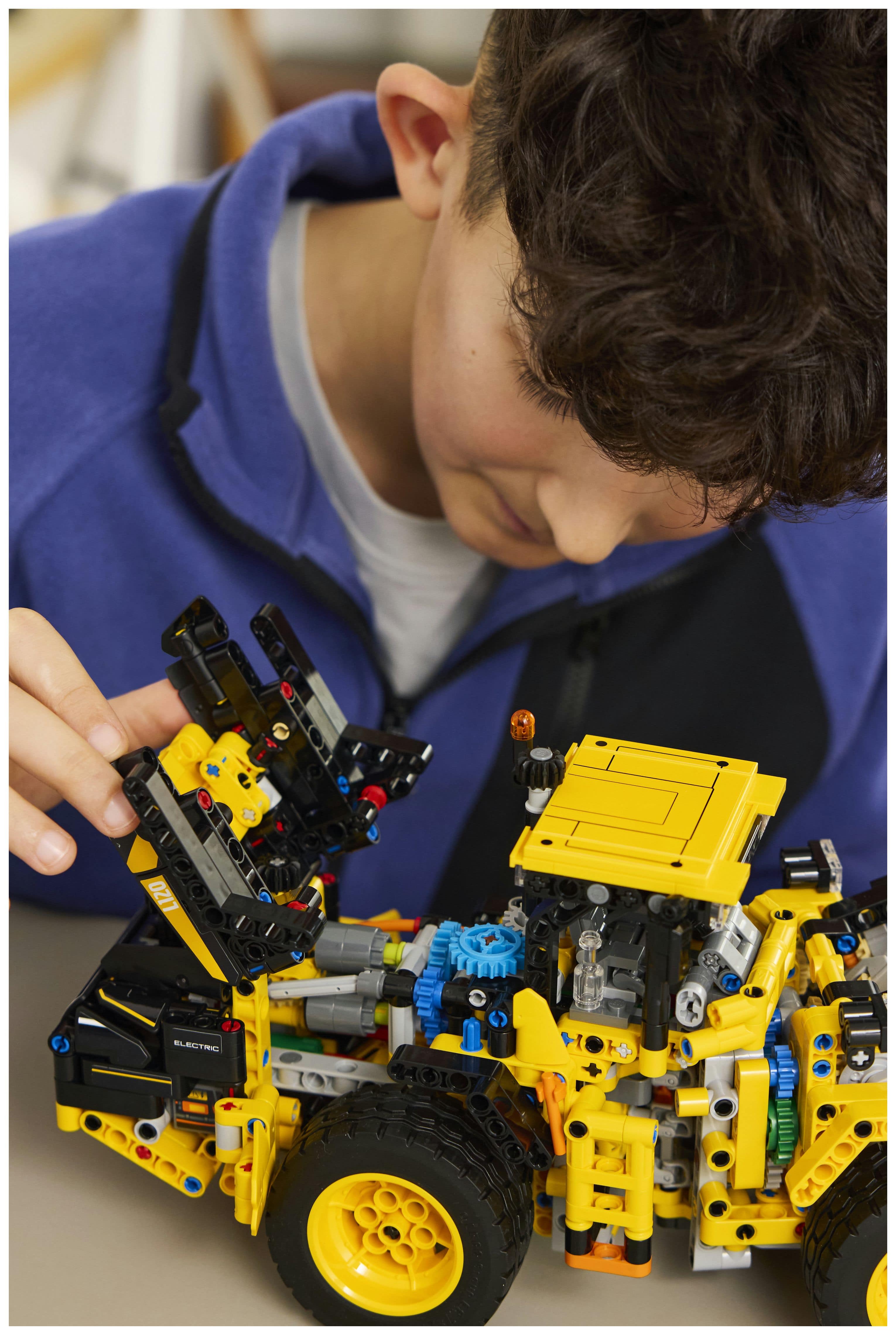 Bauspielzeug für Kinder ab 9 Jahren: Der LEGO® Technic Volvo L120 Electric Radlader ist ein Spielzeug, das Kindern eine faszinierende Bauaufgabe bietet und sie die Baumaschine mit all ihren Details zusammenfügen lässt