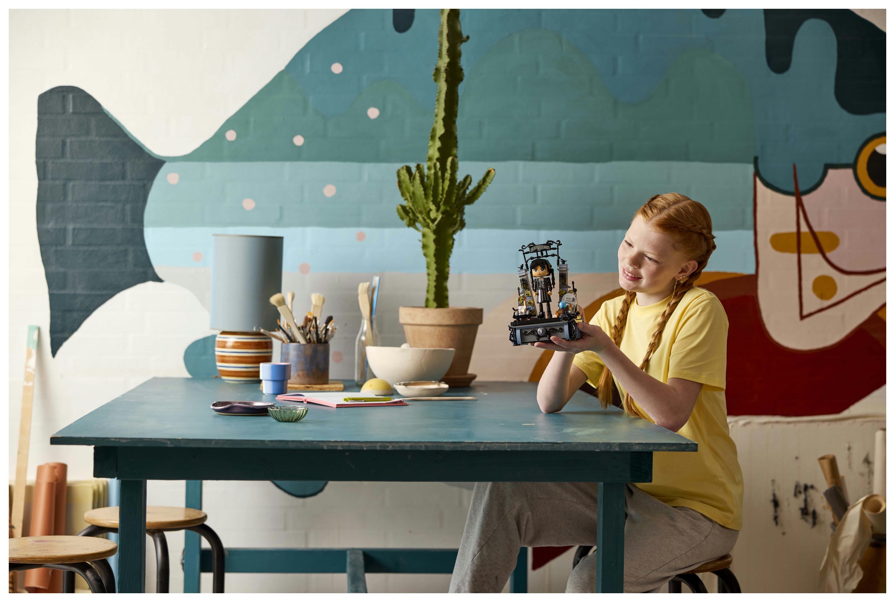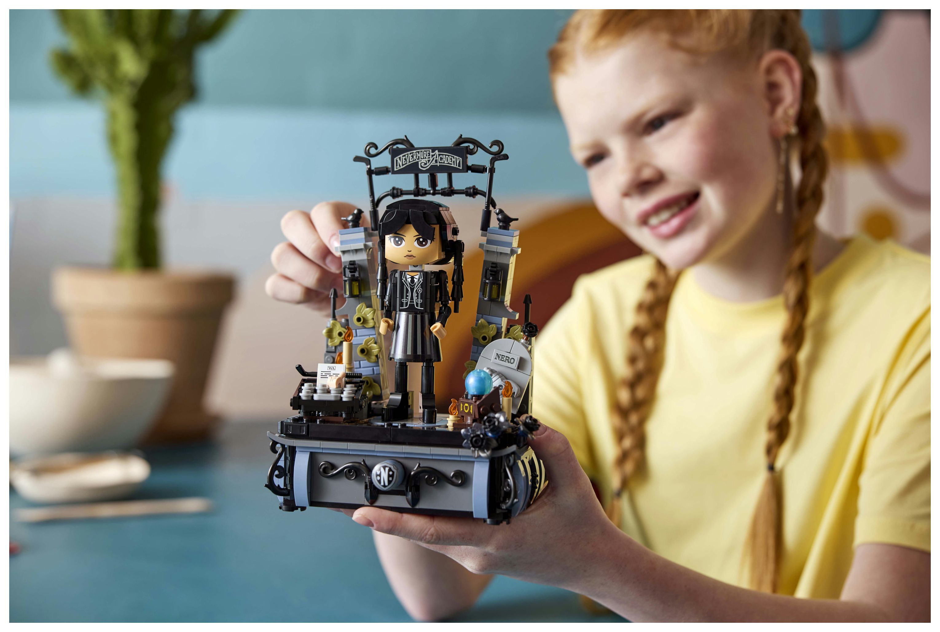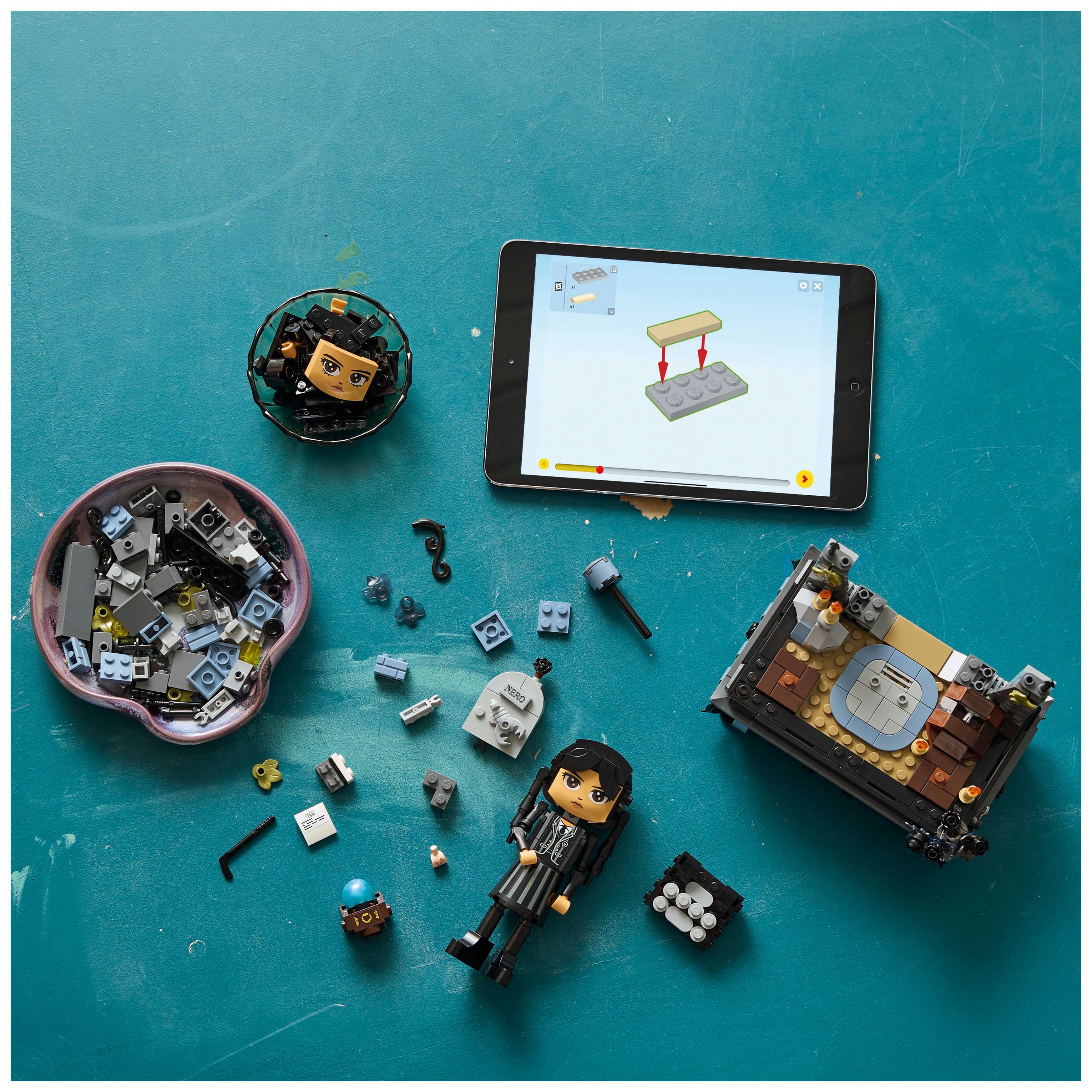 Wednesday Set zum Sammeln: Das baubare Modell der Serienheldin ist sehr wandlungsfähig und eignet sich zum Spielen und Ausstellen. Jede Menge vertraute Dinge aus der erfolgreichen TV-Serie sind ebenfalls dargestellt
