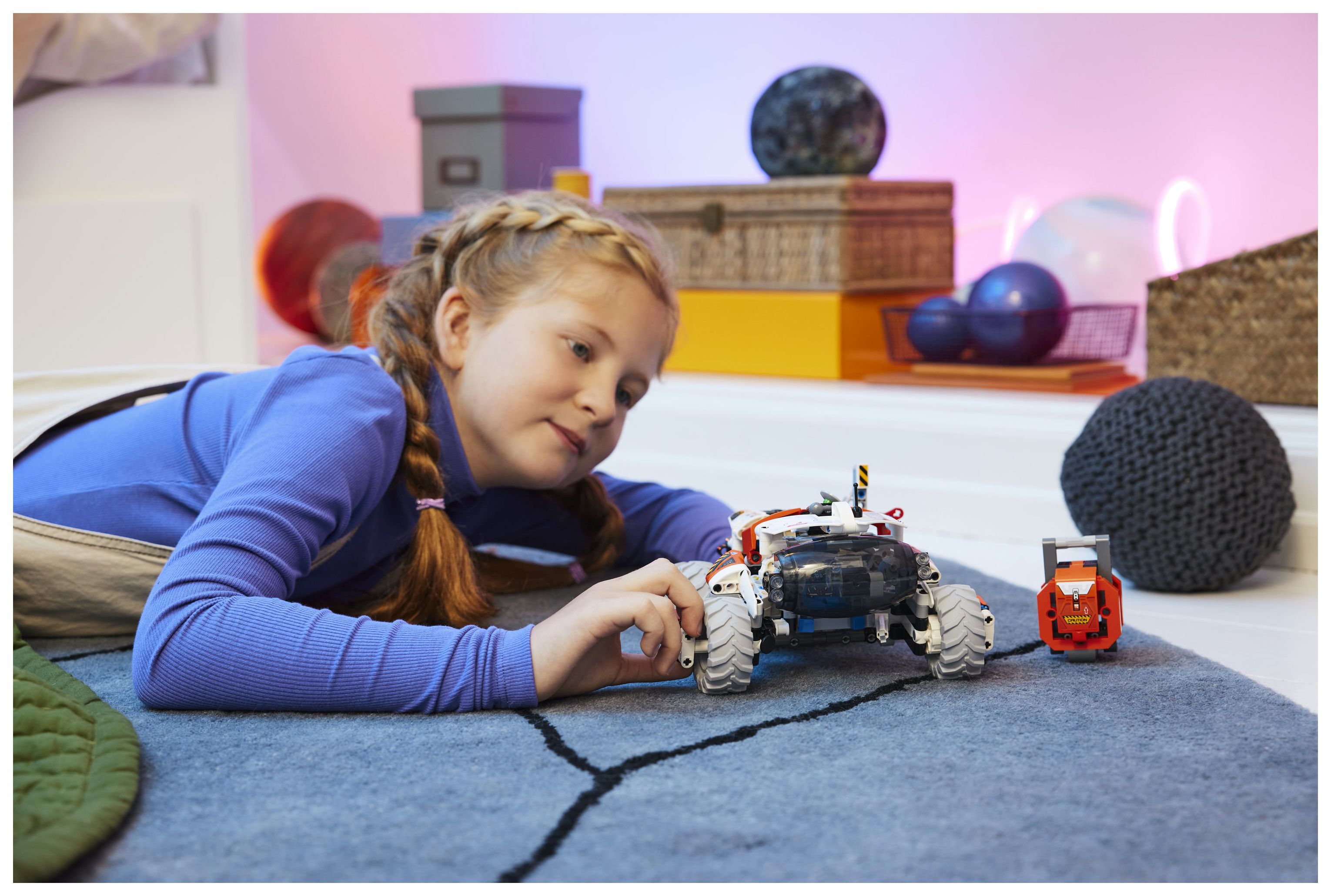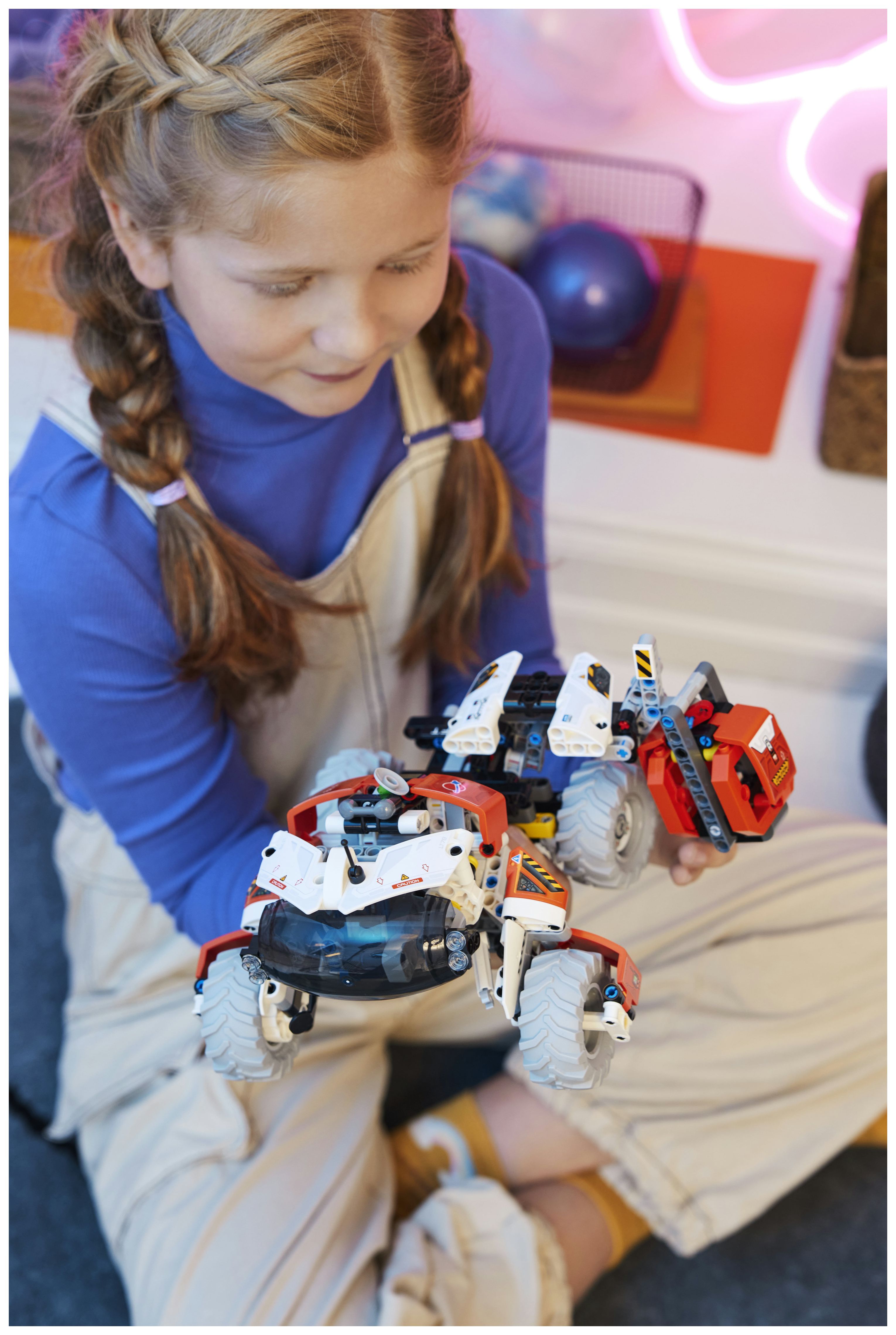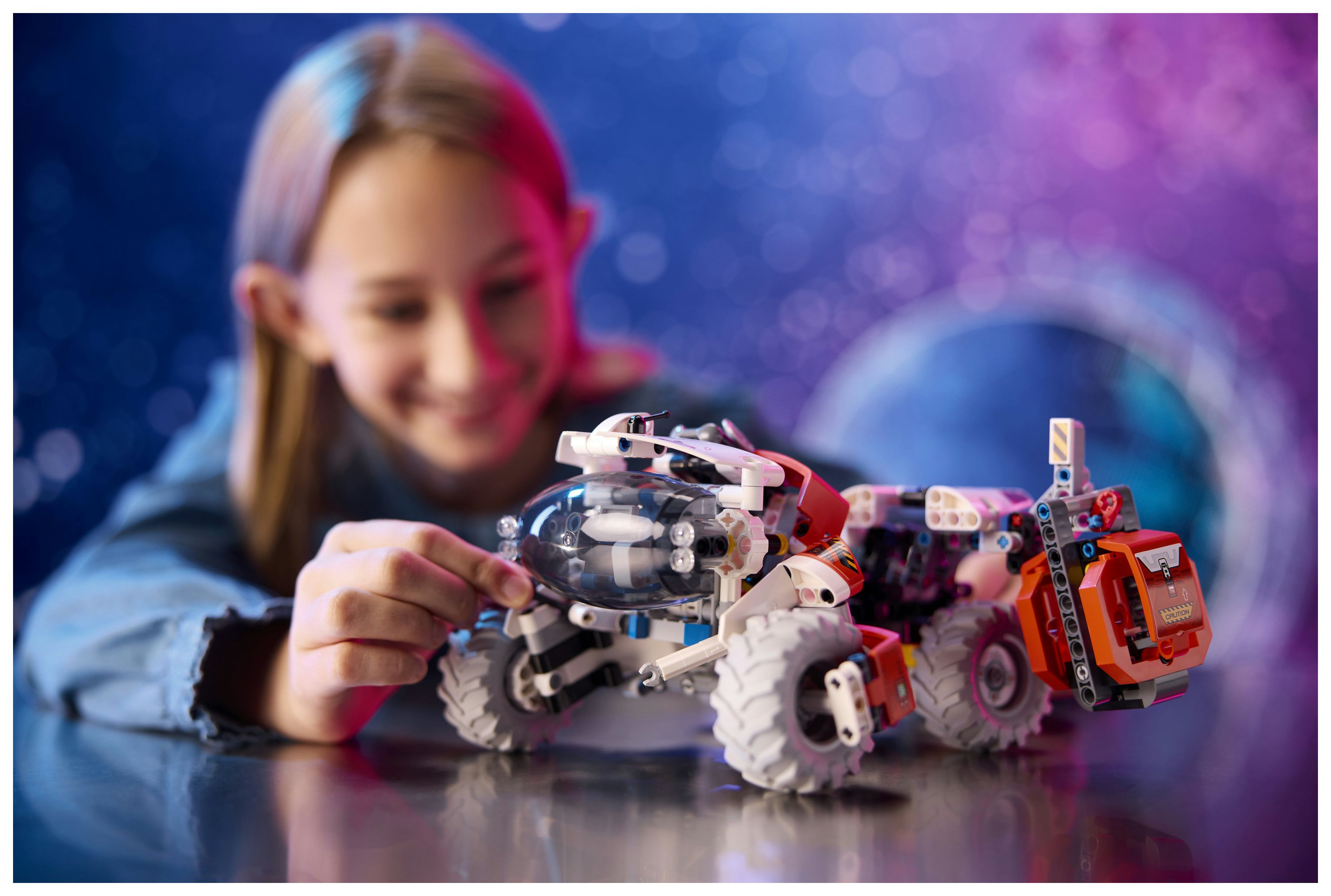 Dieser Spielzeugtransporter für die Erkundung des Weltraums strotzt vor Details, die echten Raumfahrzeugen nachempfunden sind. Kinder können das Fahrzeug lenken, die Kabine anheben oder absenken und den Kran benutzen, um die Fracht zu greifen und zu bewegen. Darüber hinaus beinhaltet das Set eine spezielle Luftschleuse, damit dein Kind das Modell für weitere Abenteuer im Weltraum an andere kompatible (separat erhältliche) LEGO Sets andocken lassen kann.