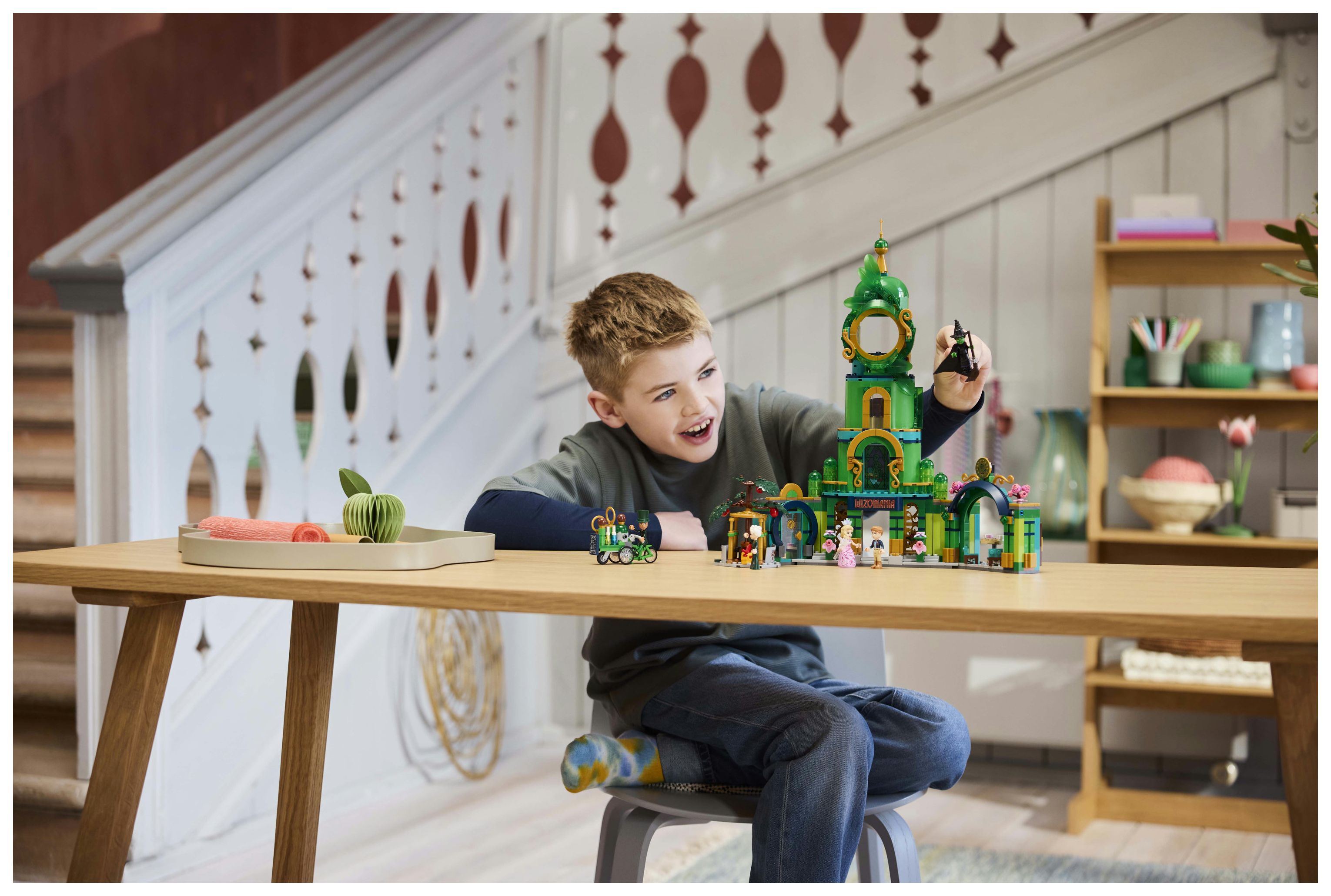 Fantasy-Spielzeug: Diese Spielzeugversion von Emerald City lässt Kinder die Heldinnen Elphaba und Glinda auf Abenteuer ins Land Oz begleiten. Man muss nur den im Set versteckten QR-Code scannen, um weitere coole LEGO® Wicked Momente zu erleben