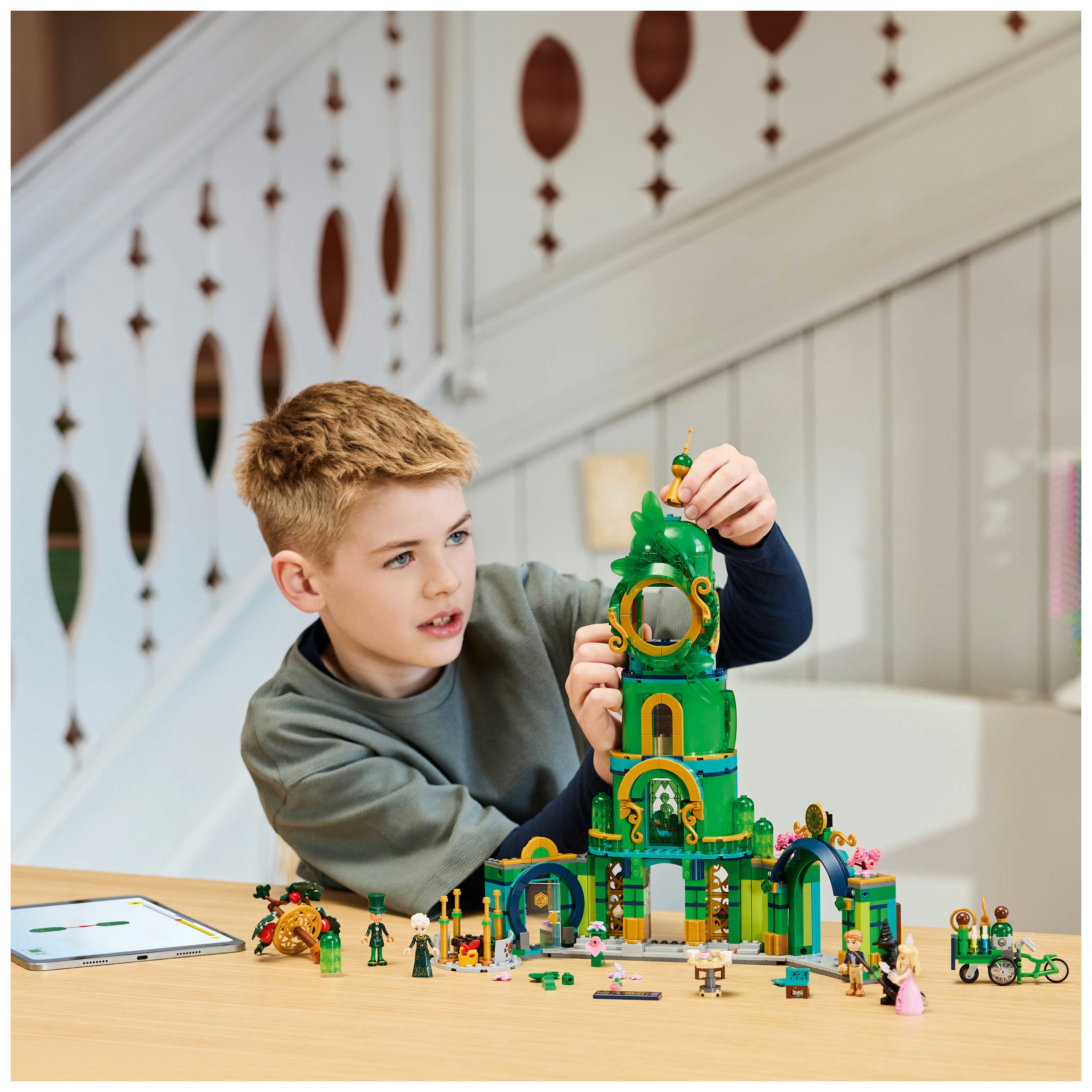 Willkommen in Emerald City (75684) ist genau das richtige Set, um Kinder ab 9 Jahren auf ein magisches LEGO® Abenteuer im Land Oz zu schicken. Mit diesem Spielzeug zum Sammeln können junge Baumeister einen 3-geschossigen Turm bauen, die zahlreichen Funktionen des Modells erkunden und Szenen aus dem Film Wicked nachstellen.