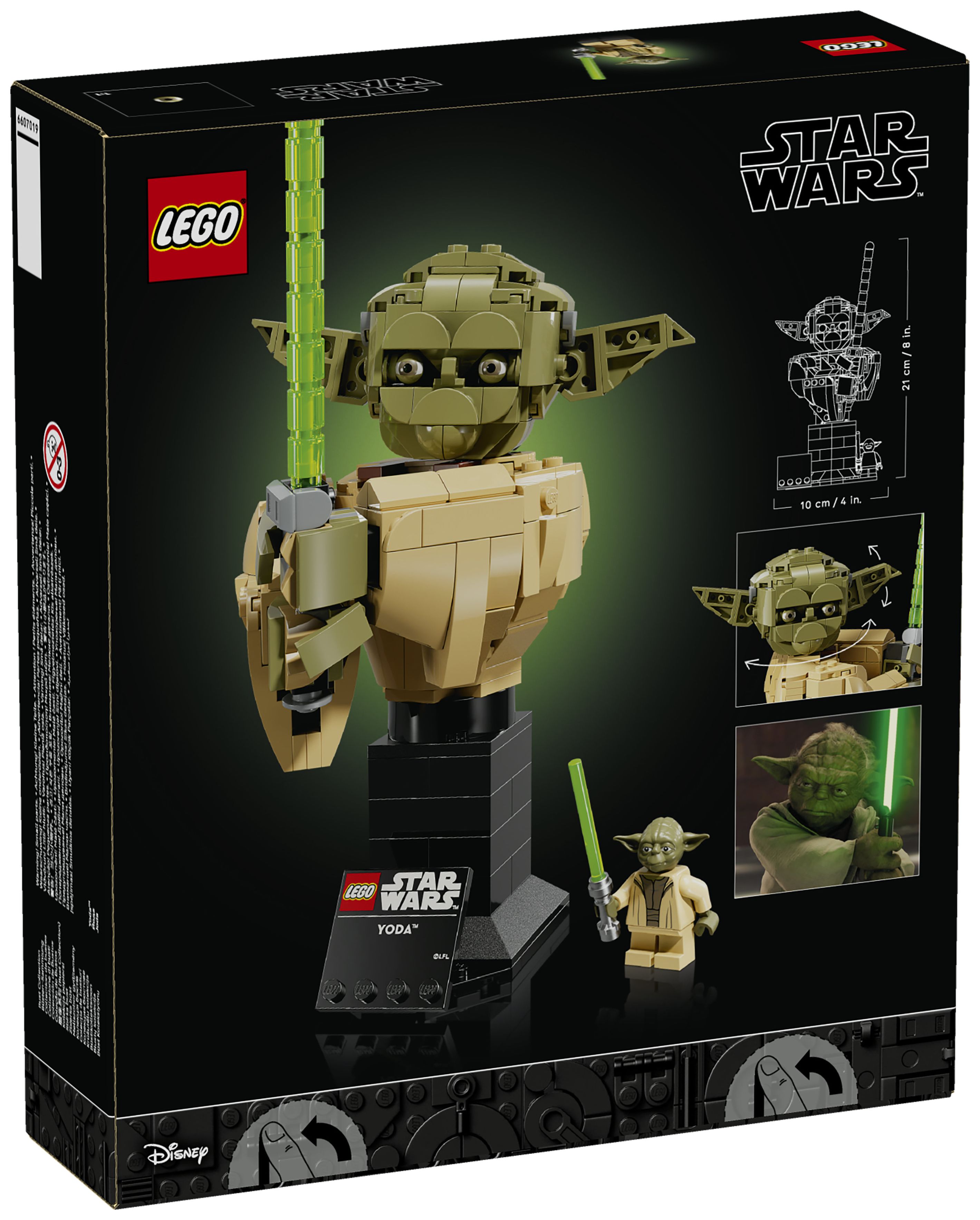 ABMESSUNGEN: Die Yoda-Büste aus LEGO® Steinen ist 21 cm hoch, 10 cm breit und 9 cm tief. Das 399-teilige Set ist eine coole Star Wars™ Zimmerdeko