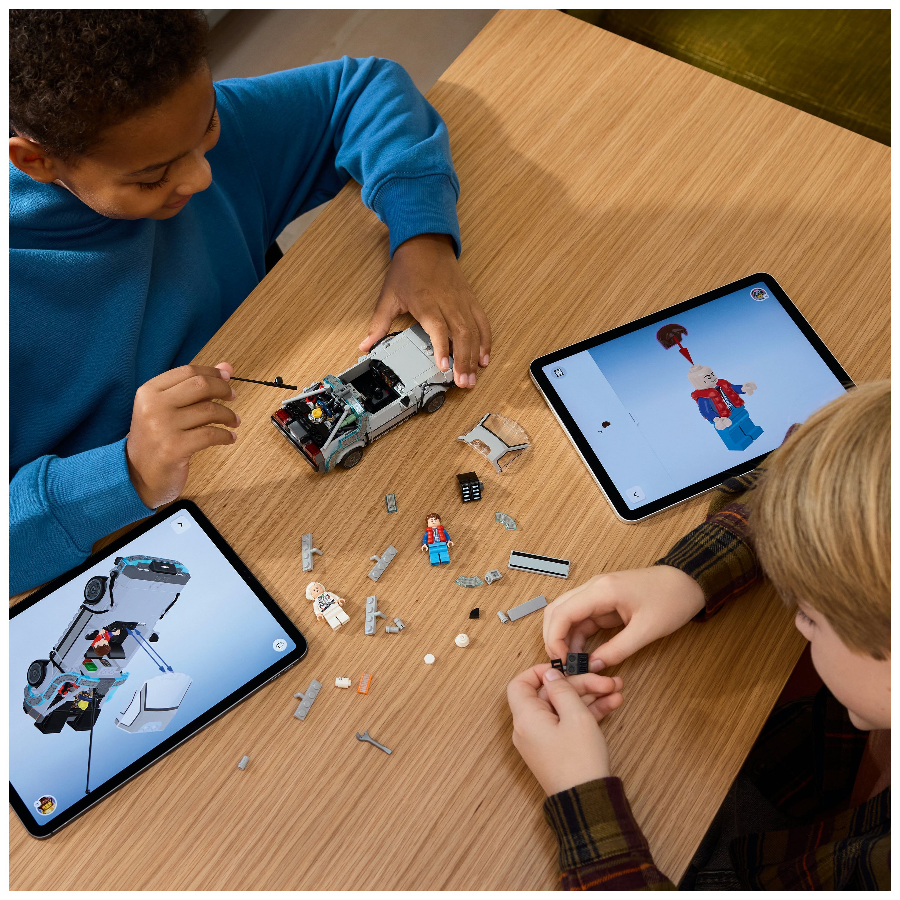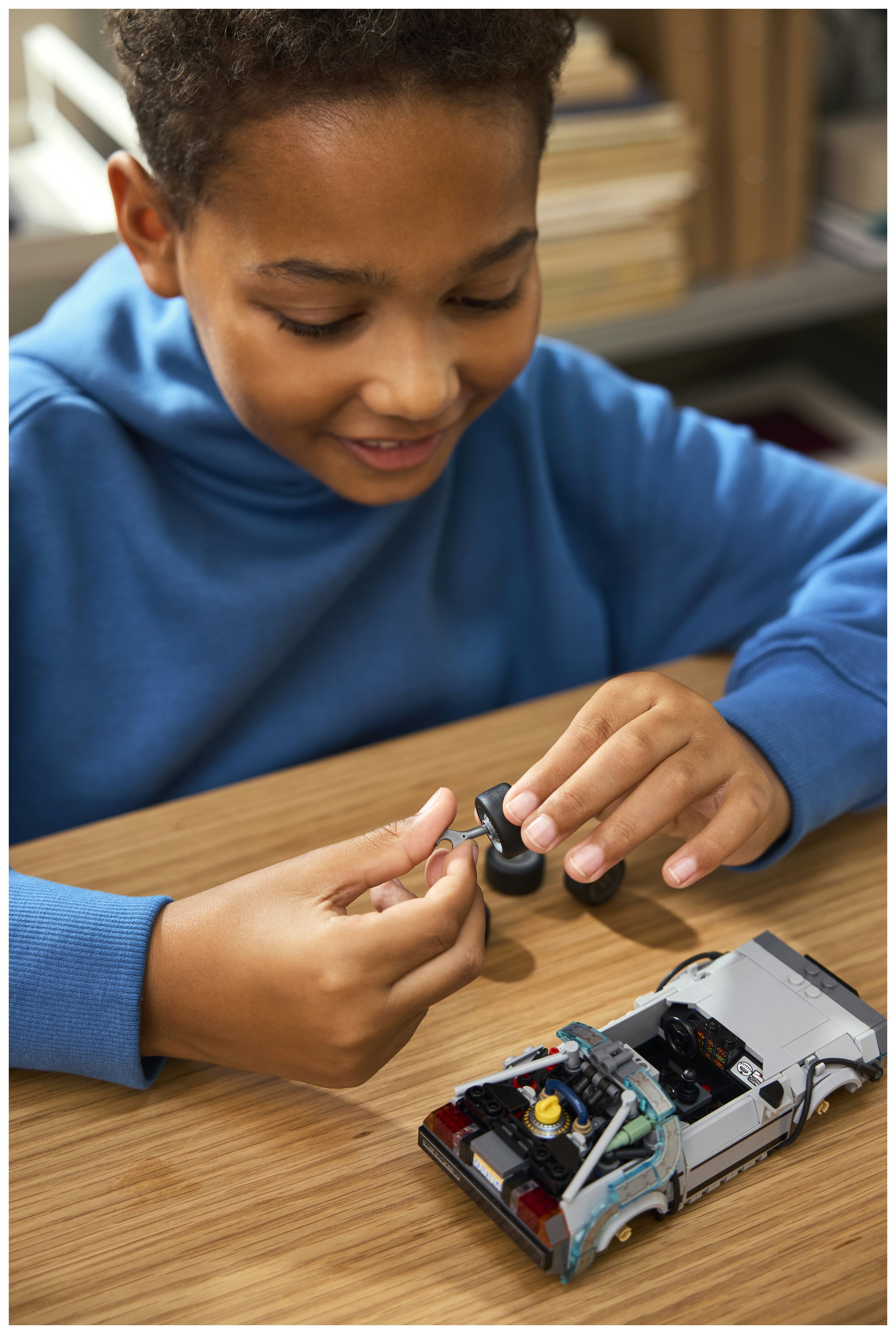 Für noch mehr Spielmöglichkeiten beinhaltet das Spielset auch 2 Minifiguren aus den Filmen: Setz Marty McFly und Doc Brown ins Cockpit. Das Set ist ein tolles Geschenk für Kinder und nostalgische Erwachsene. Und die LEGO Builder App mit verständlichen digitalen Bauanleitungen lässt Kinder selbstbewusst bauen, ein 3D-Modell vergrößern und drehen und verfolgen, wie weit sie mit ihrem Modell schon sind. Das Set besteht aus 357 Teilen.
