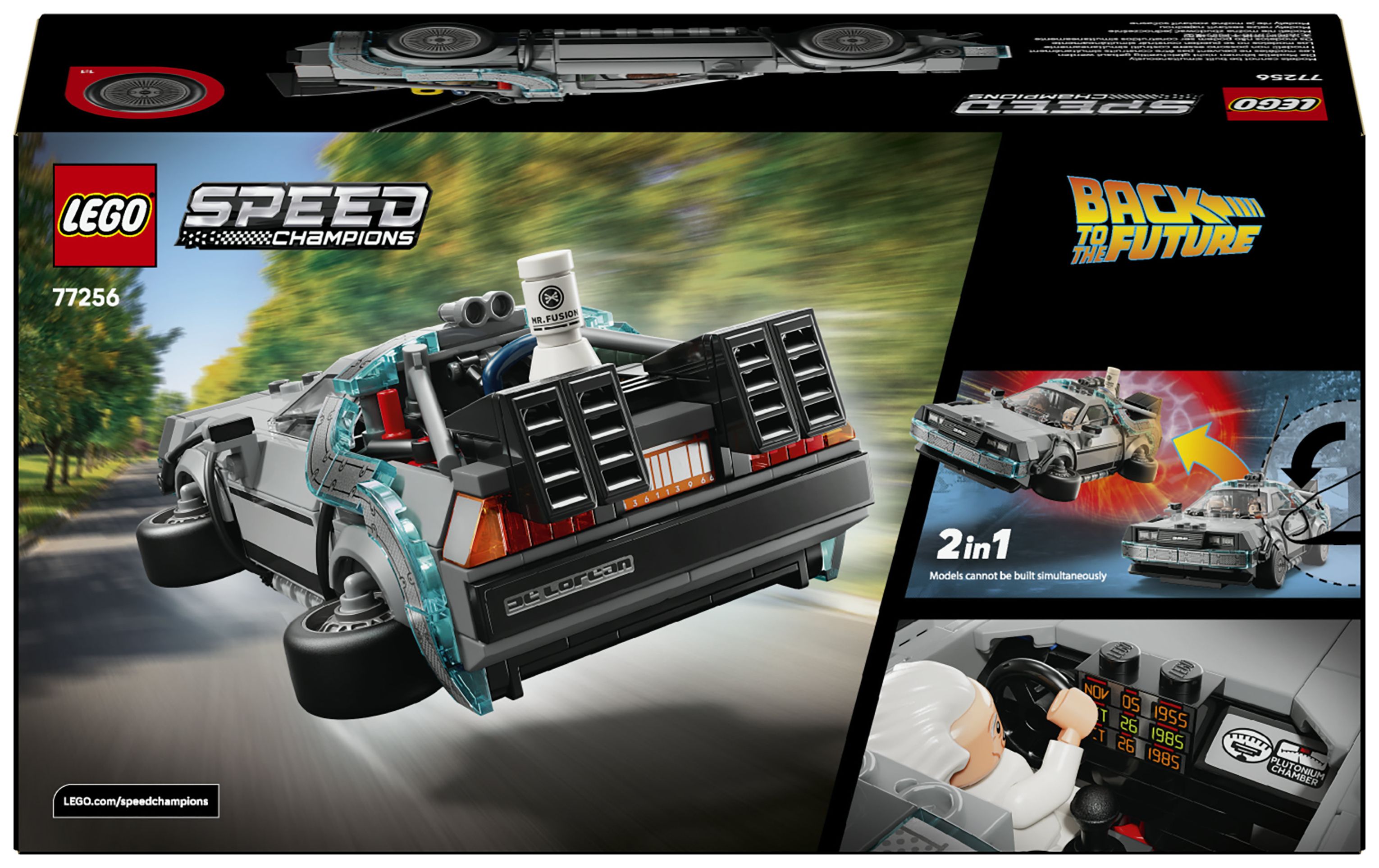 Die LEGO® Speed Champions Zeitmaschine aus Zurück in die Zukunft (77256) ist ein Bauset, das Kinder ab 9 Jahren ein Modell bauen und ausstellen und mit dem Auto den Actionspaß aus den legendären Filmen nachspielen lässt. Das Spielzeugauto aus LEGO Steinen hat viele der berühmten Details, die wir aus den beliebten Filmen kennen.