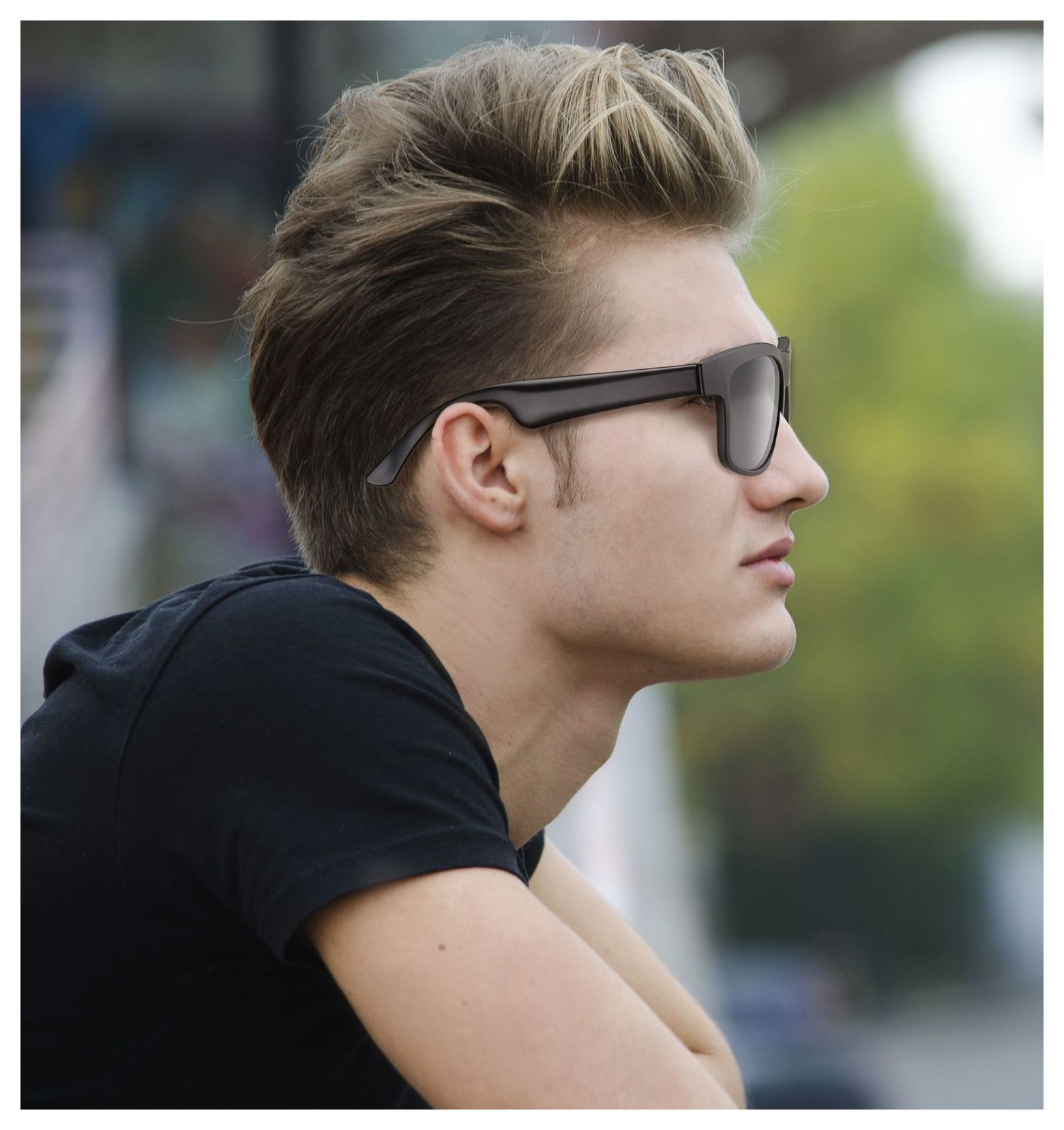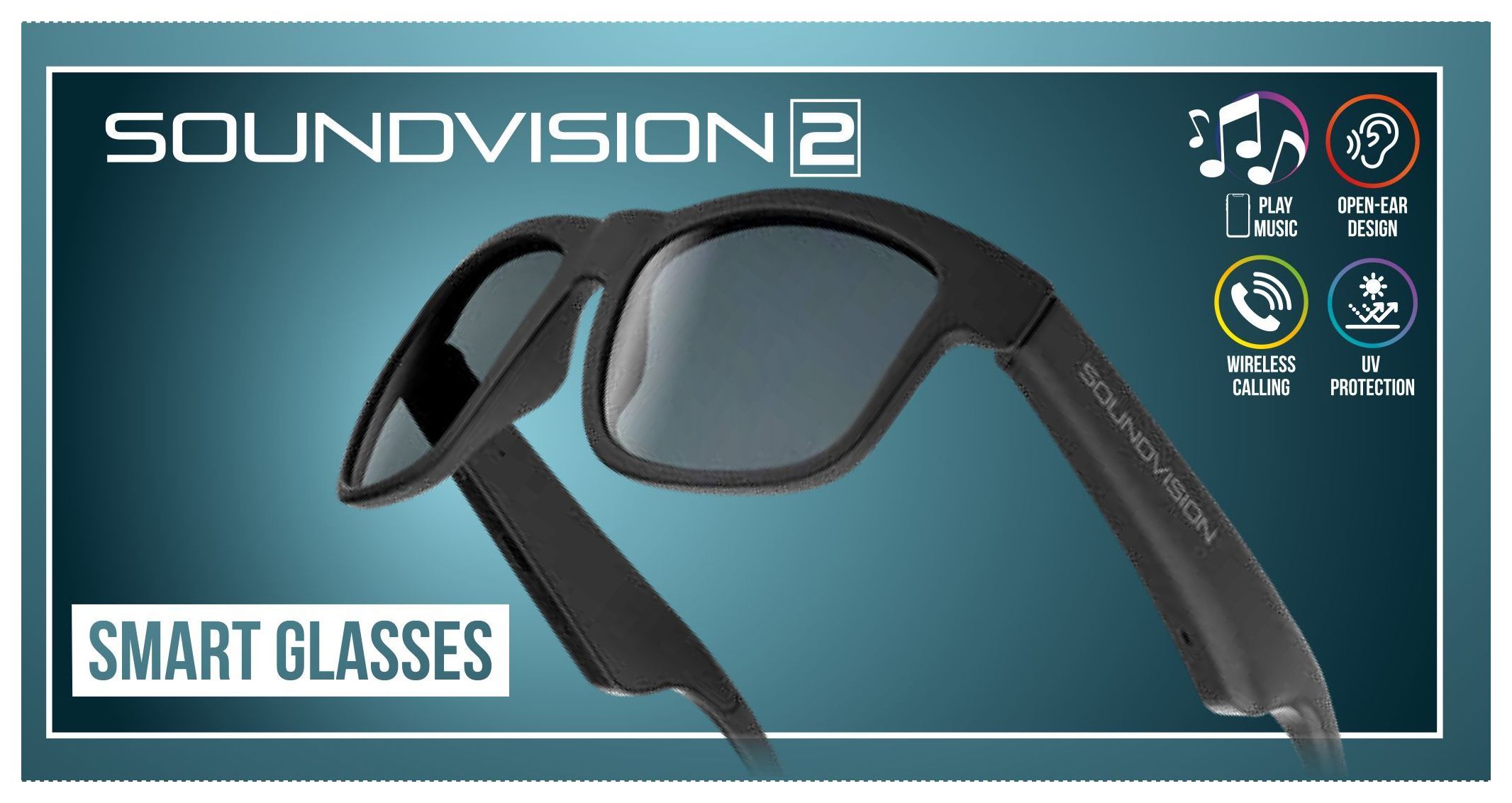 Entdecke eine neue Art, Musik und Kommunikation zu erleben – mit Sound Vision 2, der smarten Brille mit sportlich-elegantem Design. Dank der Open-Ear-Technologie kannst du deine Lieblingslieder hören und Anrufe entgegennehmen, ohne dich von der Umgebung abzuschotten – sicher und bequem zugleich.Integrierte Mikrofone und Lautsprecher sorgen für klare Kommunikation und ein Hörerlebnis ganz ohne Ohrstöpsel. Mit allen Bluetooth-Geräten kompatibel, begleiten sie dich ideal durch deinen Alltag. Zudem bieten die Gläser mit UV-Schutz auch bei Sonnenschein eine sichere Sicht.Ideal für alle, die Stil, Funktionalität und Bewegungsfreiheit in einem einzigen Accessoire suchen.