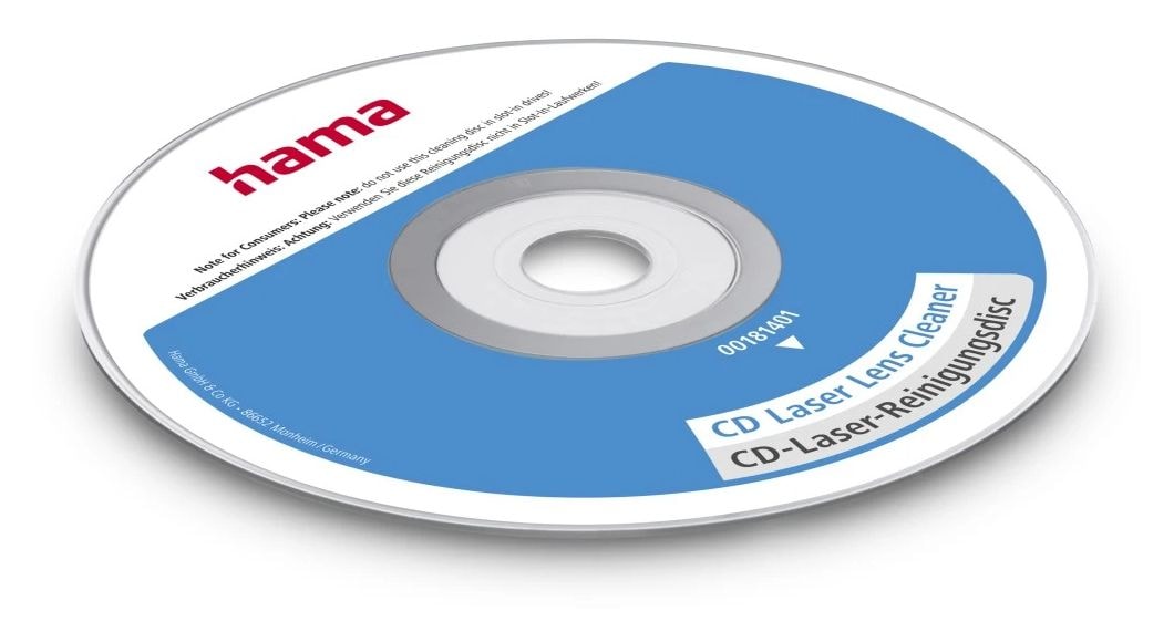 Hama 00181401. Produkttyp: Reinigungs-CD, Vorgesehene Verwendung: DVD Player, Produktfarbe: Blau, Weiß. Menge pro Packung: 1 Stück(e)