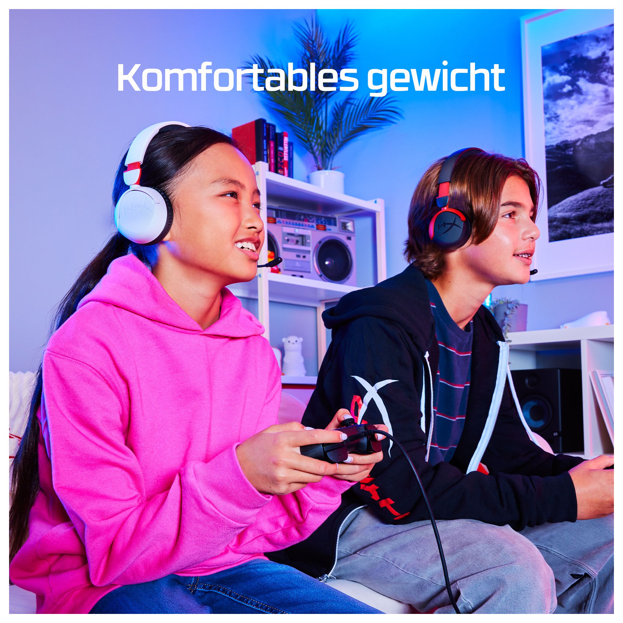 Das HyperX Cloud Mini ist ein komfortables kabelgebundenes Headset für die aufstrebenden Gaming-Stars von morgen. Dieses leichte Headset wird für ein Alter von 8 bis 12 Jahren empfohlen. Es hat genau die richtige Größe für jüngere Gamer und ist speziell auf den Schutz ihrer Ohren ausgelegt[1]. Es verfügt über ein simples Mikrofon mit Flip-Mute-Funktion, mit dem jüngere Gamer online mit Freund:innen chatten können. Und bei Nichtgebrauch lässt es sich gut verstauen[3]. Die Ohrmuscheln sind drehbar, wenn es Zeit für eine Pause ist. Damit ist es außerdem hervorragend geeignet zur einfachen Aufbewahrung und zum praktischen Transport. Das Cloud Mini lässt sich ganz einfach an alle Geräte mit 3,5-mm-Buchse anschließen. So ist dieses vielseitige Headset bereit für das Gamen auf Mobilgeräten, Chromebooks, Nintendo Switch, PlayStation, PC, Steam Deck und sonstigen Geräten[2].