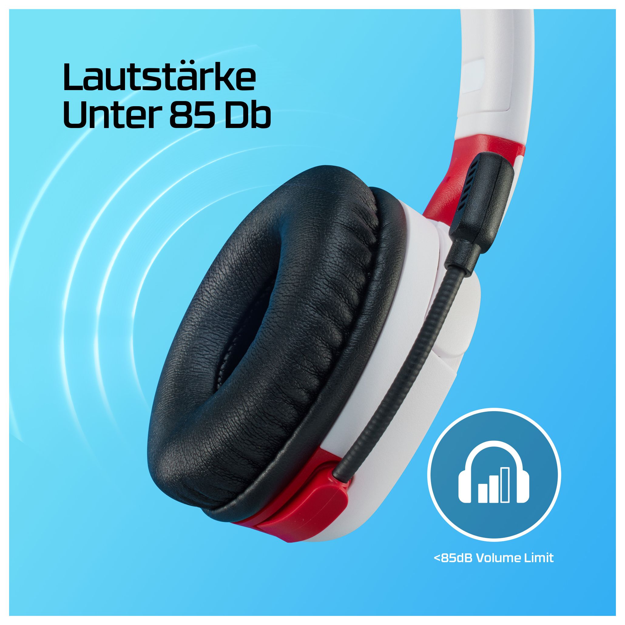 Das HyperX Cloud Mini ist ein komfortables kabelloses Headset für angehende Gamer. Dieses leichte Headset wird für ein Alter von 8 bis 12 Jahren empfohlen. Es hat genau die richtige Größe für jüngere Gamer und ist speziell auf den Schutz ihrer Ohren ausgelegt[1]. Mit einer Akkulaufzeit von bis zu 25 Stunden eignet es sich perfekt für Flüge oder Gaming-Sessions[2]. Die einfache Kopplung über Bluetooth bietet kabellose Freiheit, sodass man sich keine Sorgen über Kabelsalat machen muss. Es ist mit einem einfachen Flip-to-Mute-Mikrofon ausgestattet, damit jüngere Gamer online mit ihren Freund:innen chatten können. Wird es nicht benötigt, lässt es sich einfach verstauen***. Die Earcups lassen sich drehen, sodass sich das Headset für den Transport auch gut verstauen lässt. Das Cloud Mini Wireless lässt sich einfach mit Bluetooth-kompatiblen Geräten sowie mit jedem Gerät mit einem 3,5-mm-Anschluss verbinden[4]. Ob dein junger Gamer auf einem Mobilgerät, auf der Nintendo Switch, PlayStation, dem PC, Chromebook, Steam Deck oder anderen Geräten spielt – dieses vielseitige Headset ist einsatzbereit[5].