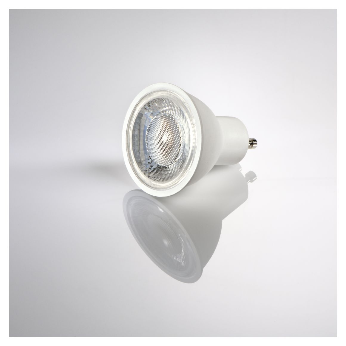 Xavax 00112857. Lampenleistung: 4,5 W, Äquivalente Glühlampenleistung: 50 W, Fassungs-/Sockeltyp: GU10, Lichtleistung: 350 lm, Leuchtmittellebensdauer (in Std.): 20000 h, Lichtfarbe: Tageslicht, Farbtemperatur: 6500 K, Strahlungswinkel: 38°, Farbwiedergabeindex (CRI): 80