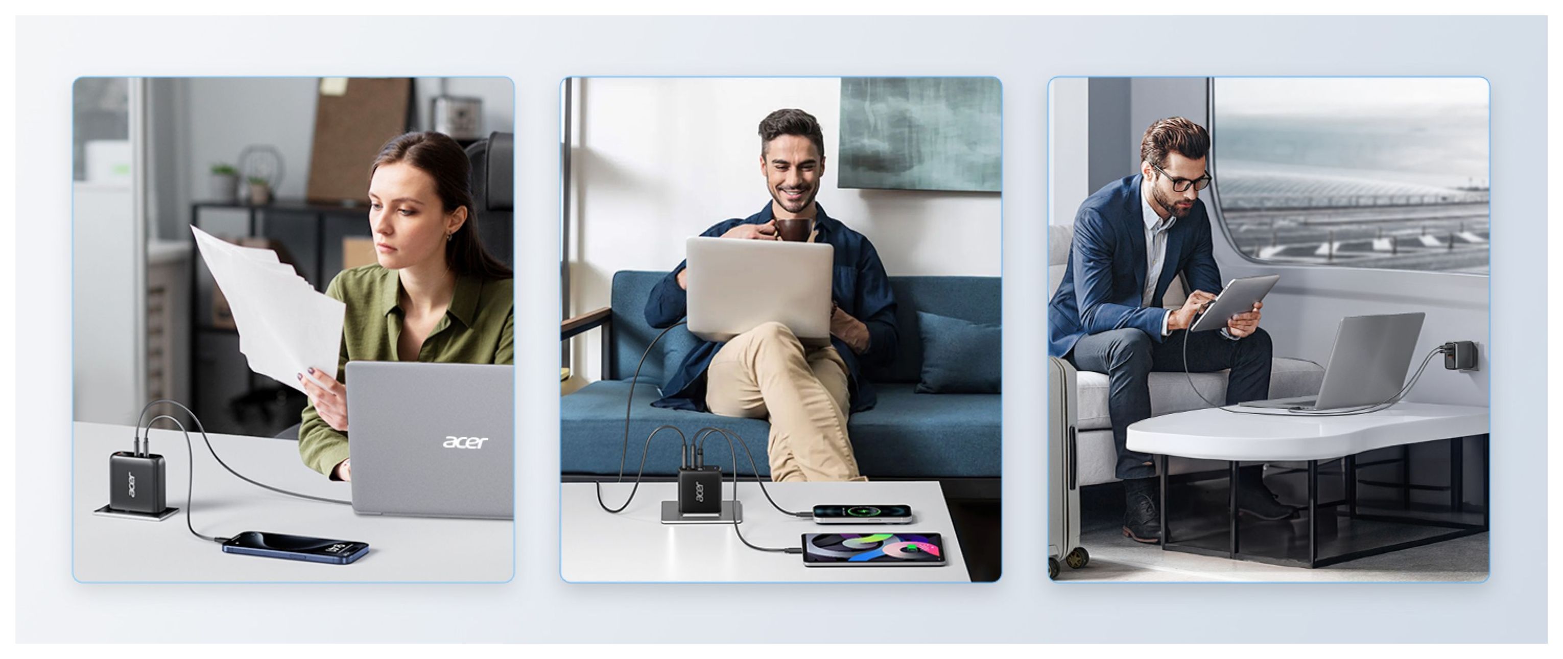 Acer ZL.ADTCC.00J. Aufladetyp: Drinnen, Energiequelle: AC, Aufladekompatibilität: Universal, USB Typ-C Anzahl Anschlüsse: 2, Schnellladung. Kabellänge: 2 m, Produktfarbe: Schwarz