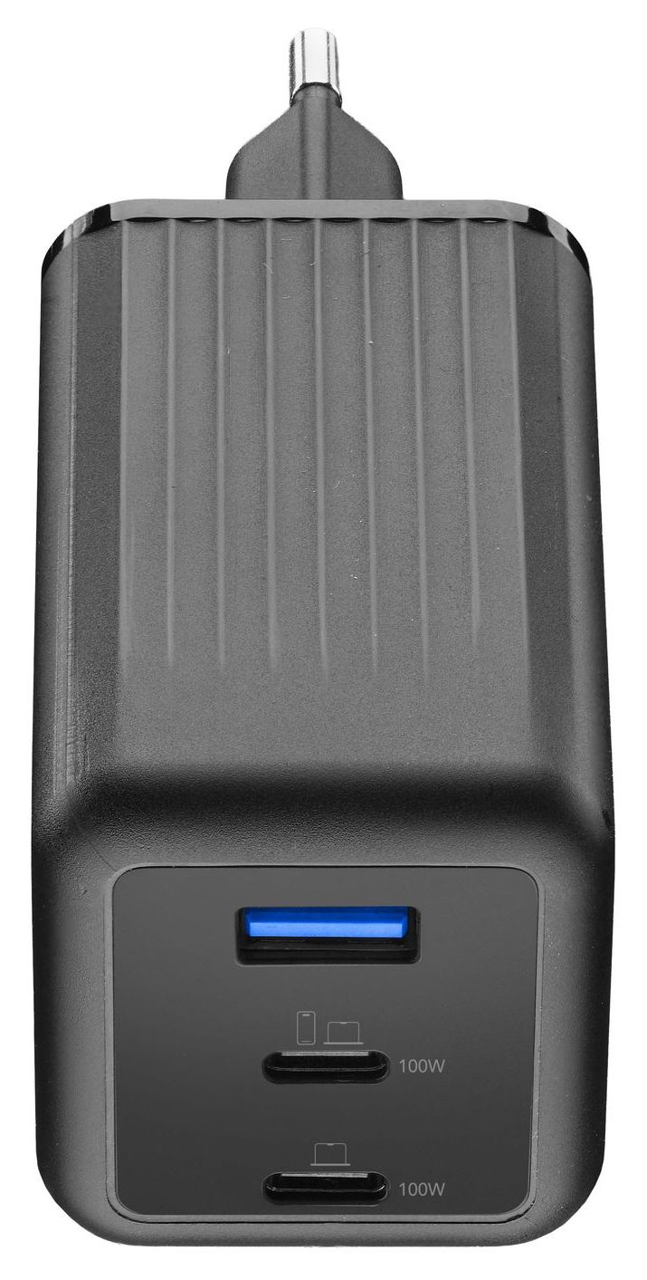 ACH GaN+ 3 Anschlüsse 100W Hochleistungs‑100W‑Wandladegerät mit 2 USB‑C‑ und 1 USB‑A‑Port, kompatibel mit Smartphone, Tablet und Laptop (Schwarz)