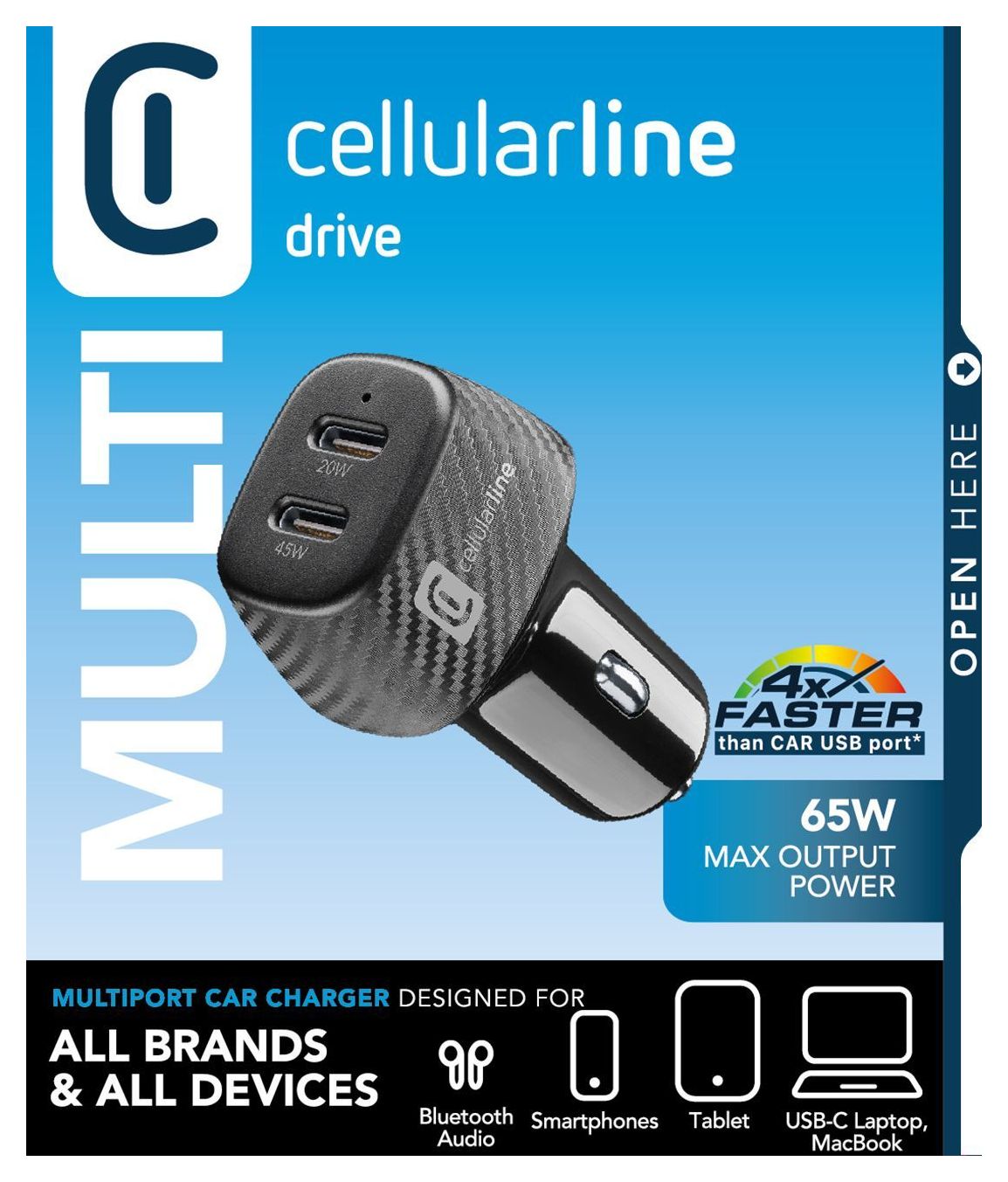 Car Power Hyper - iPhone, Samsung, Xiaomi, Oppo and other Smartphones and Tablets Auto-Ladegerät mit 2 Anschlüssen, 65 W Power Delivery (Schwarz)