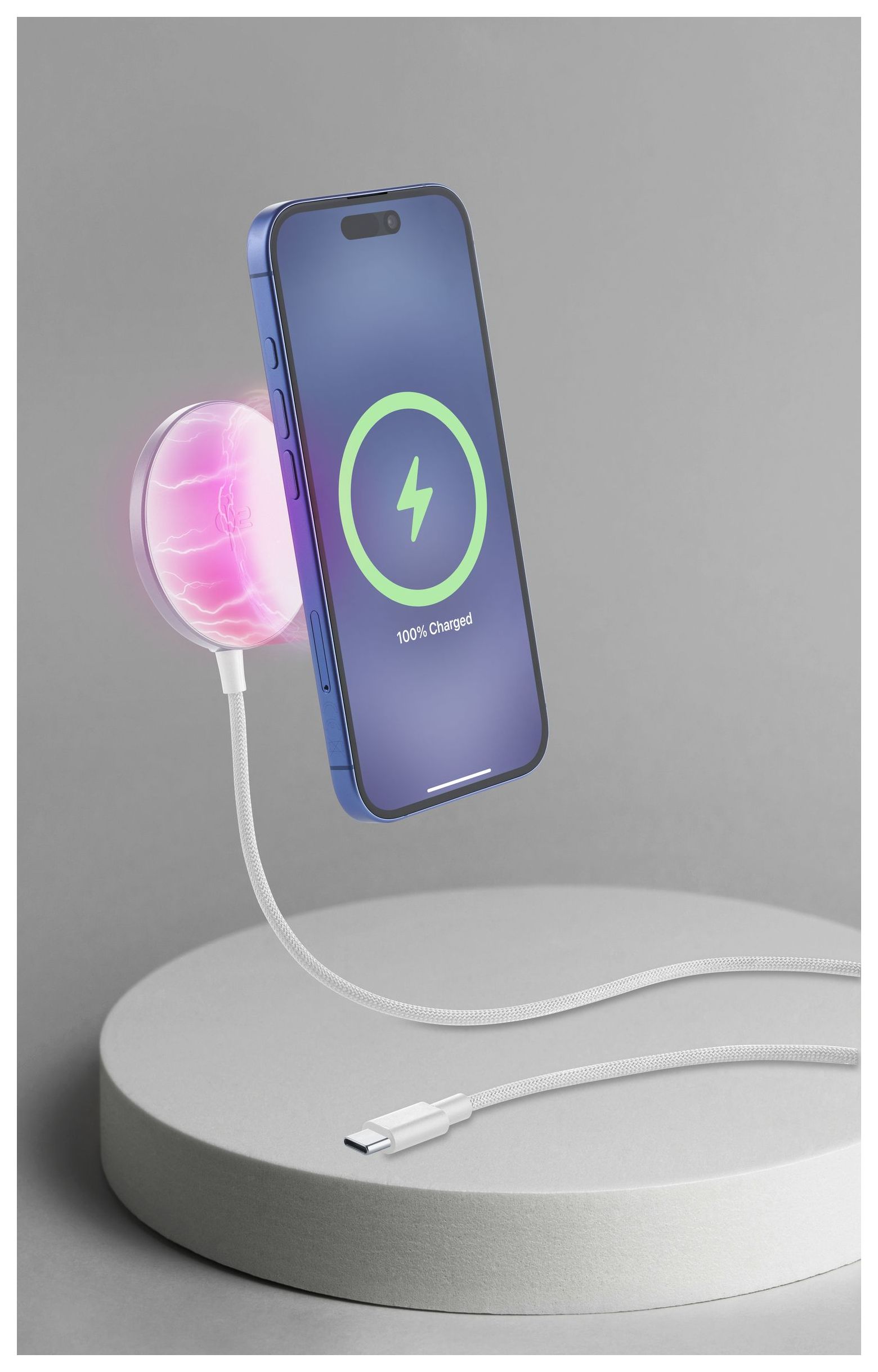 MAG Qi2 WIRELESS CHARGING PAD ist das magnetische, kabellose Ladepad, das eine schnelle und sichere Aufladung für alle kompatiblen Smartphones bietet. Mit Qi2-Zertifizierung liefert es bis zu 15W Leistung mit präziser magnetischer Ausrichtung und garantiert maximale Effizienz sowie Sicherheit. Der mitgelieferte Magnetring ermöglicht eine perfekte Verbindung zwischen Gerät und Zubehör und aktiviert kabelloses Laden für alle mit dieser Technologie kompatiblen Smartphones. Das edle Design besticht durch eine Soft-Touch-Beschichtung und metallische Akzente, während das 1m lange, silikonummantelte Gewebekabel für Langlebigkeit und Widerstandsfähigkeit sorgt.