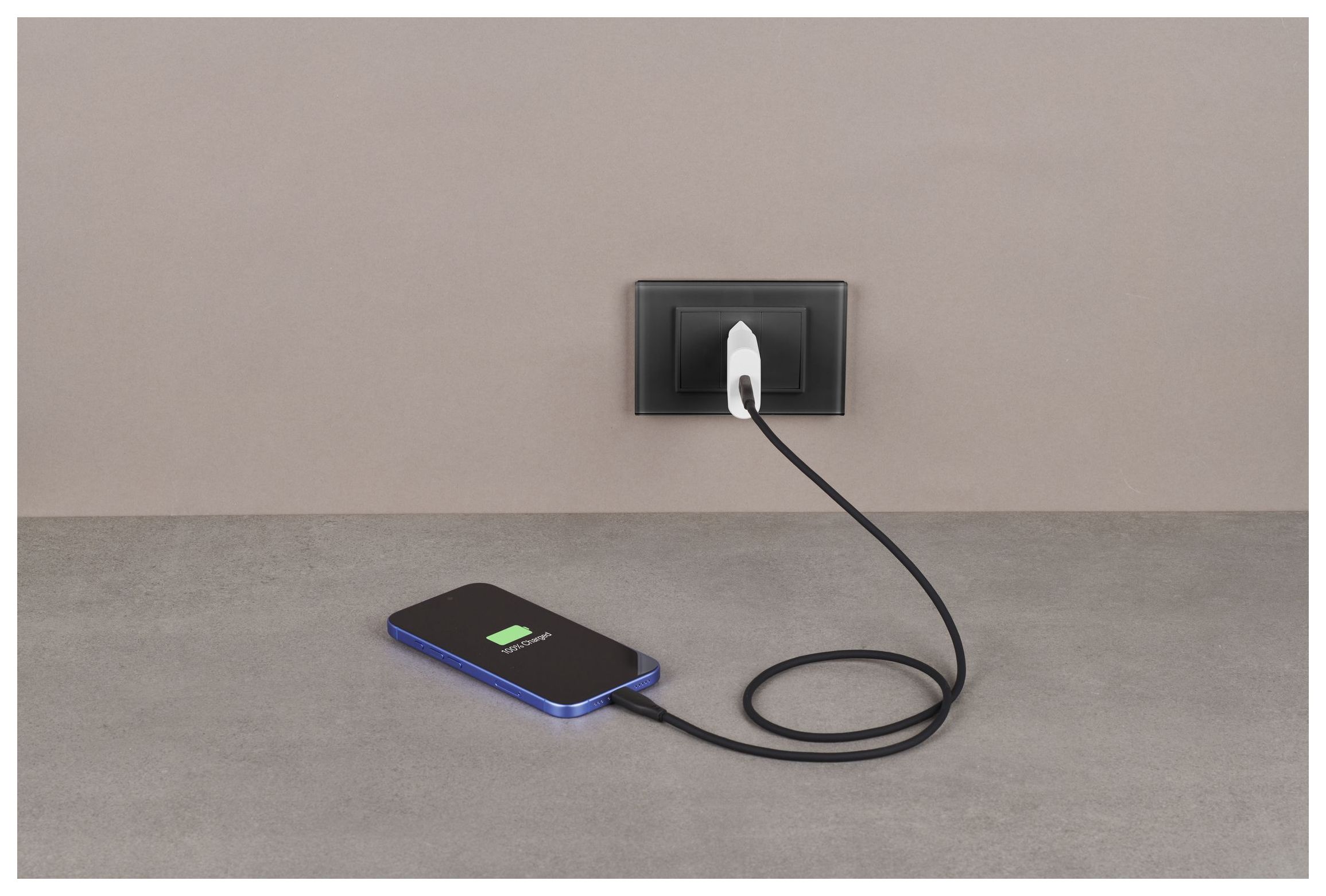 GAN SLIM 30W PD ist das perfekte Ladegerät für alle, die Leistung und Kompaktheit suchen. Mit seinem schlanken Design und dem 30W USB-C Power Delivery-Anschluss ermöglicht es schnelles und effizientes Laden von Mobilgeräten. Kompatibel mit Samsungs Super Fast Charging 25W. Die GaN-Technologie (Galliumnitrid) reduziert die Wärmeentwicklung und ermöglicht eine kompaktere Bauweise. Ausgestattet mit Schutz vor Überladung und Kurzschluss sowie einem automatischen 110/240V-Spannungsanpasser.