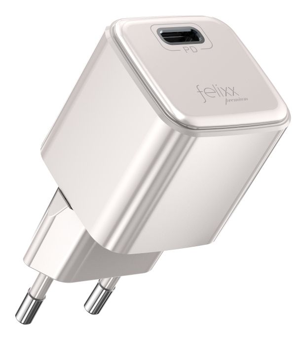 Laden Sie Ihr iPhone oder Smartphone mit dem felixx Premium 25W USB Typ-C Ladegerät super Schnell auf. Die integrierte PPS-Technik ( Programmable Power Supply) ermöglicht optimales Laden mit kompatiblen Geräten, da die beste Ladespannung dynamisch ermittelt wird. So können z.B. Samsung-Smartphones mit bis zu 25 W und iPhones mit bis zu 20 W aufgeladen werden. Erhältlich in den designer Farben Perlmut weiß und Space Grey