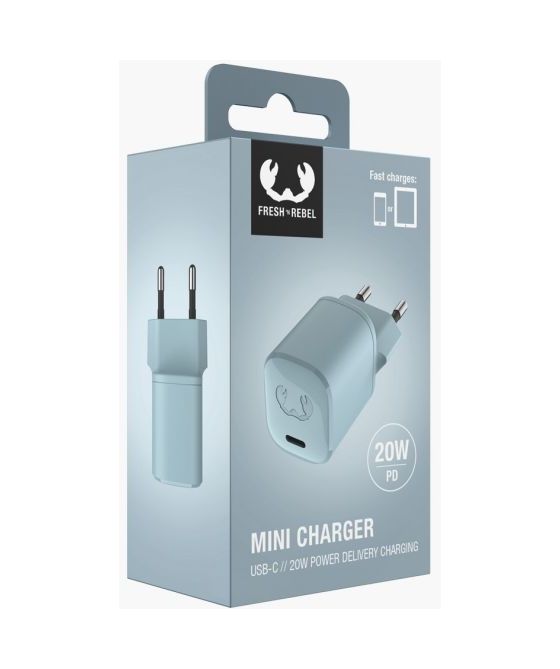 Fresh 'n Rebel 2WC20DB. Aufladetyp: Drinnen, Energiequelle: AC, Aufladekompatibilität: Smartphone, Tablets, USB Typ-C Anzahl Anschlüsse: 1, Schnellladung, Energieschutzeigenschaften: Überstrom, Überhitzung, Überlastschutz, Kurzschluß. Produktfarbe: Blau