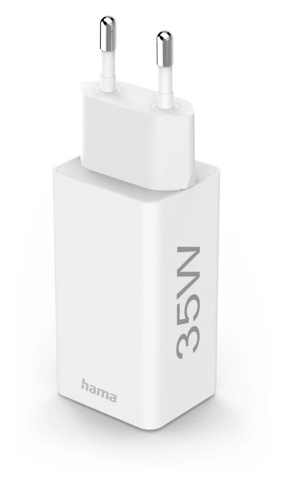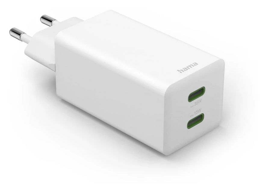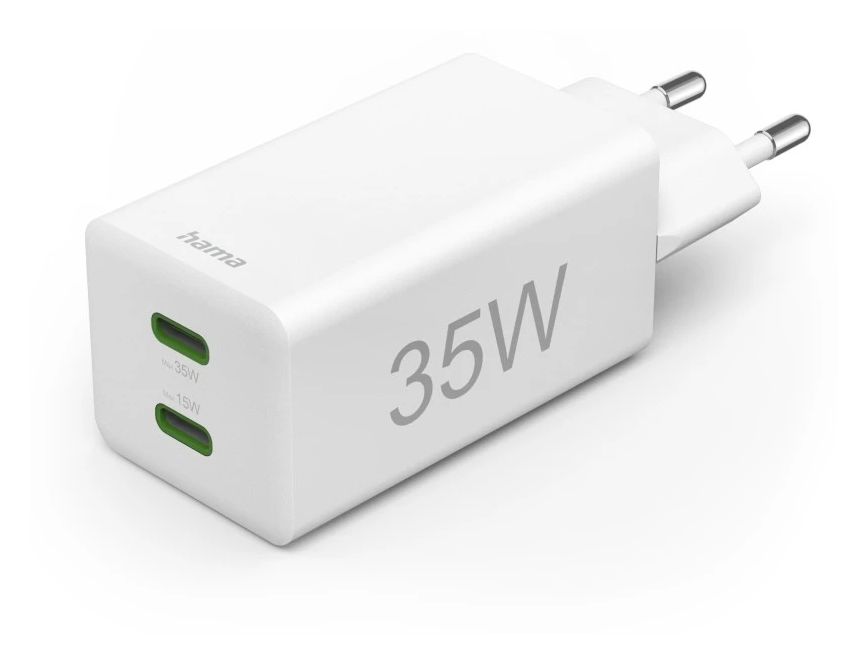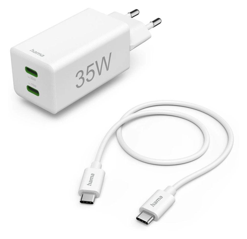 Schnellladegerät + Kabel, 2x USB-C, PD / QC, Mini-Ladegerät, 35W, 1 m, Weiß