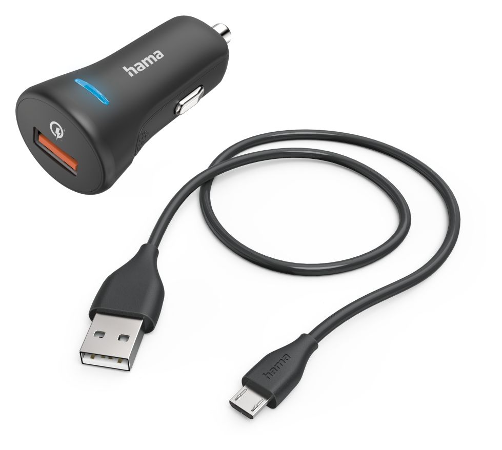 Auto-Schnellladegerät mit Ladekabel Micro-USB, QC, 19,5 W, 1,5 m, Schwarz