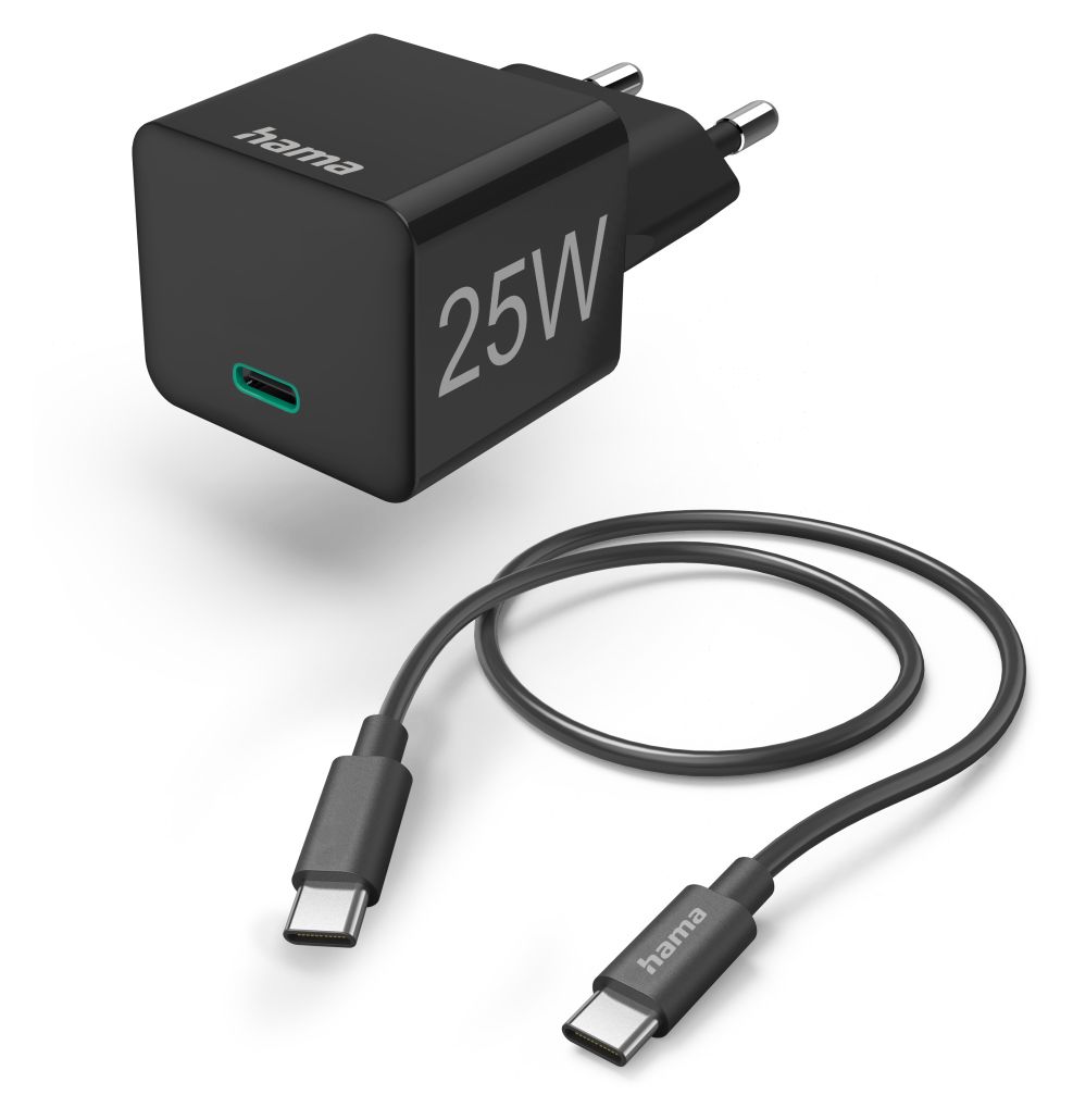Schnellladegerät mit Ladekabel USB-C, Mini-Ladegerät, PD, 25W, 1 m, Schwarz
