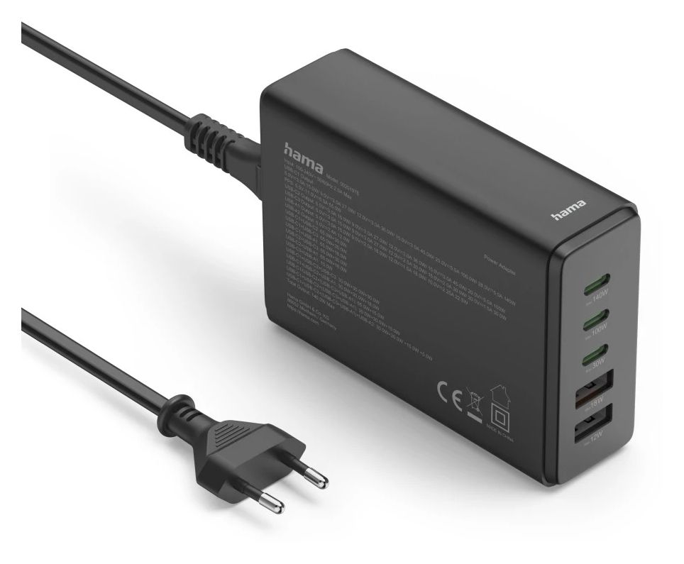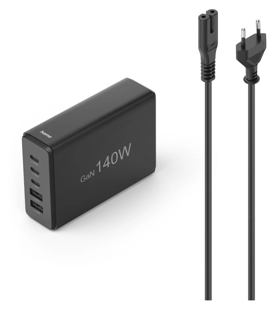 Ladestation 5 Ports, GaN, Schnellladegerät, 3xUSB-C, 2xUSB-A, PD, 140 W, SW