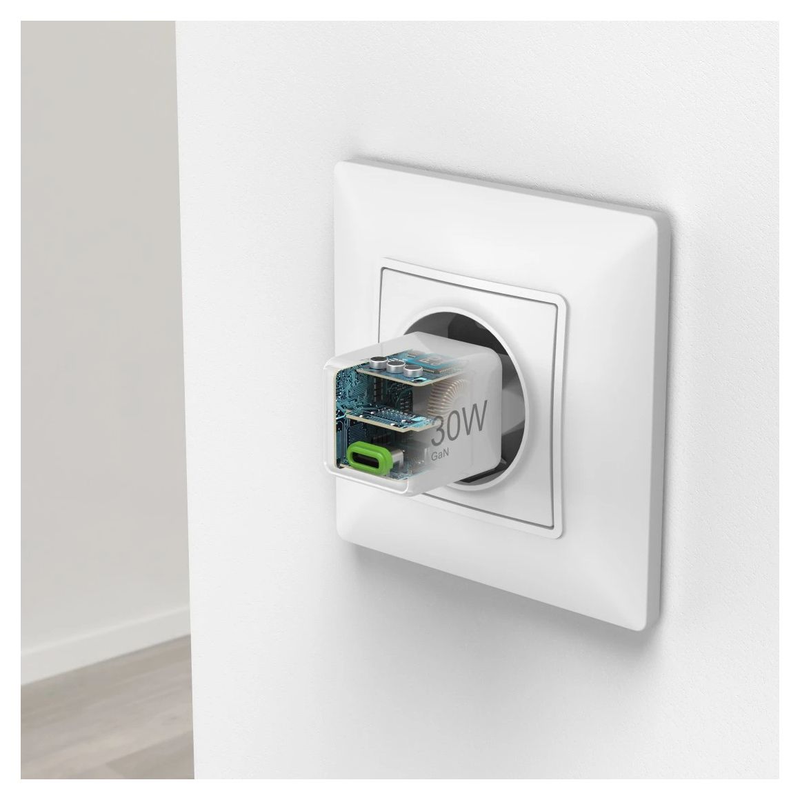 Schnellladegerät, GaN, USB-C, Super-Mini-Charger, PD, 30 W, Weiß