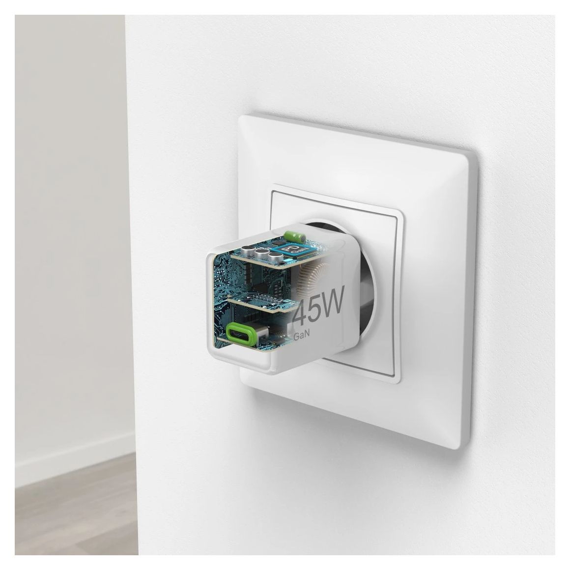 Schnellladegerät, GaN, USB-C, Super-Mini-Charger, PD, 45 W, Weiß