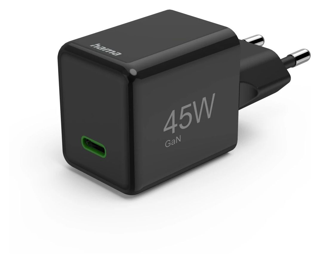 Schnellladegerät, GaN, USB-C, Super-Mini-Charger, PD, 45 W, Schwarz