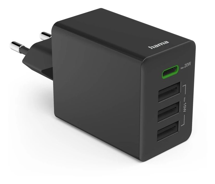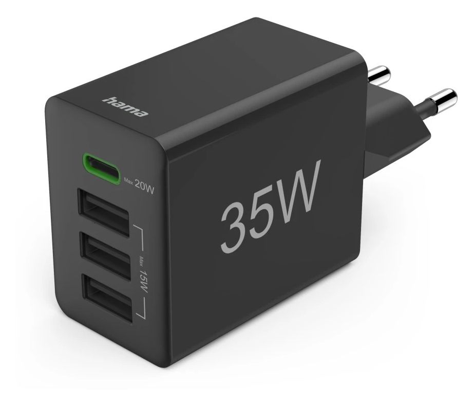 Schnellladegerät, 1x USB-C PD, 3x USB-A, Mini-Ladegerät, 35W, Schwarz