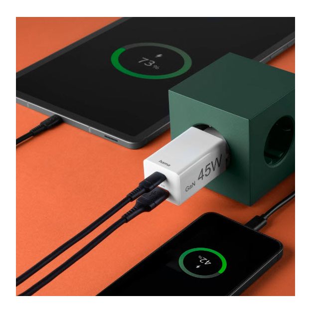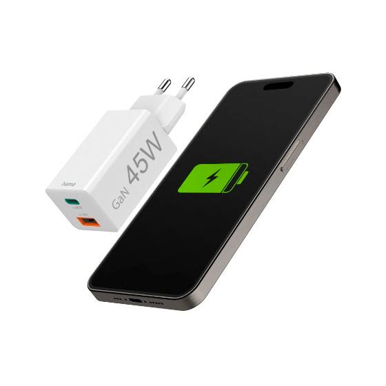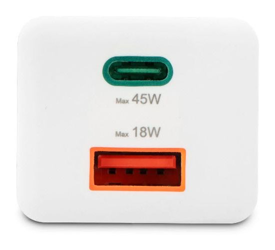 Mehr Energie in weniger Zeit: Mit unserem 45 Watt starken Schnellladegerät stehen Handy oder Tablet blitzartig wieder im Saft. Zwei unterschiedliche USB-Anschlüsse machen gleichzeitiges Laden verschiedener Geräte mit nur einer Steckdose möglich – perfekt für zuhause, Office oder Reisen.