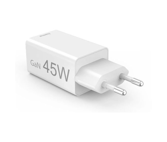 Schnellladegerät, 1x USB-C PD, 1x USB-A QC, Mini-Ladegerät, 45 W, Weiß