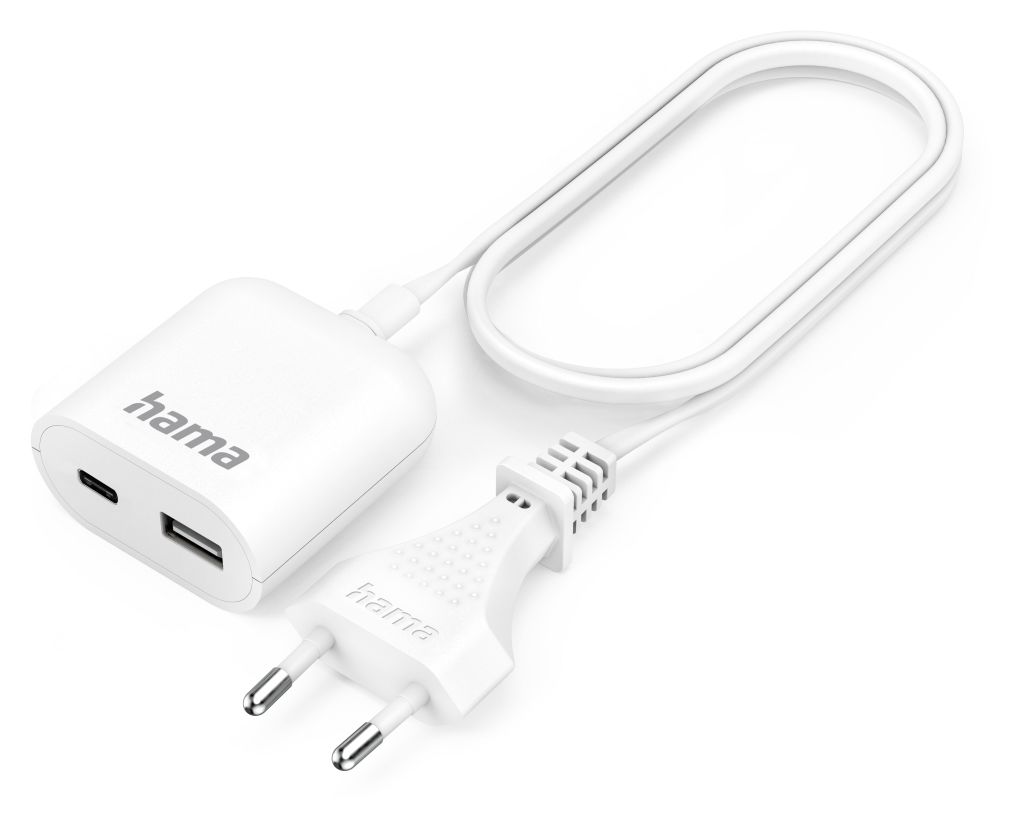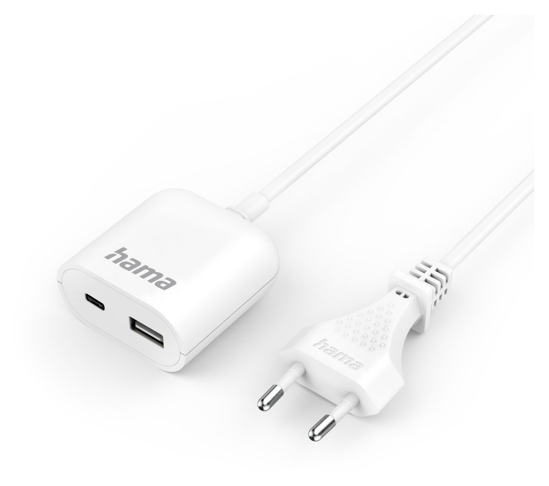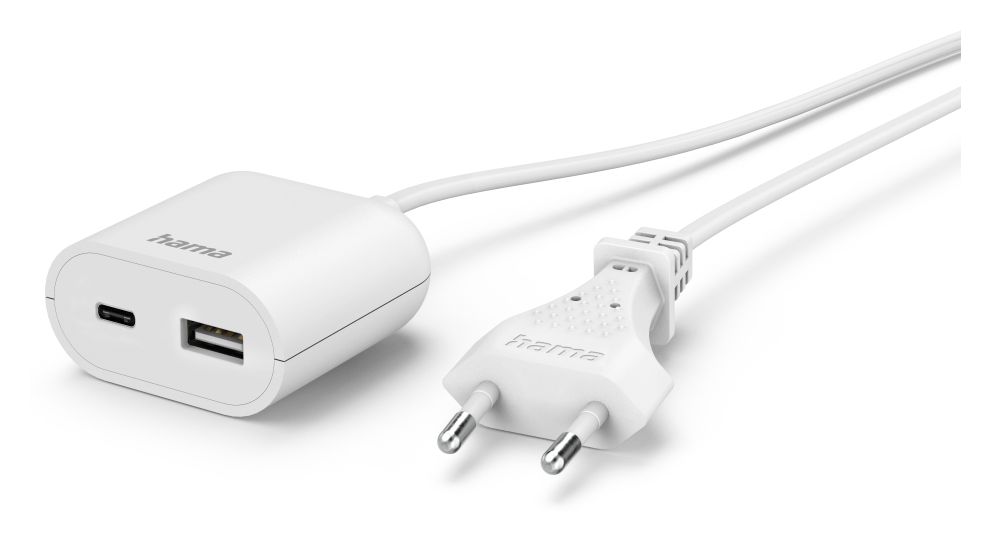 USB-Netzteil mit 1,9 m langem Kabel, 3,5A, 1x USB-A, 1x USB-C, Weiß
