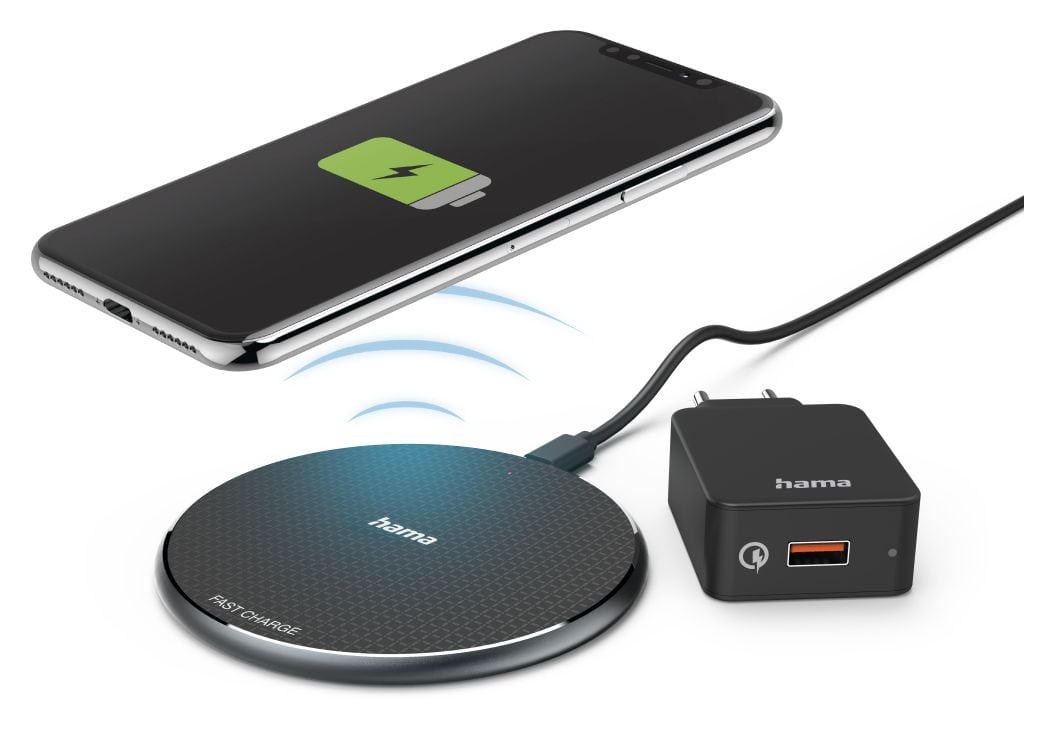 Wireless Charger Set "QI-FC10", 10 W, kabelloses Smartphone-Ladepad, Schw.