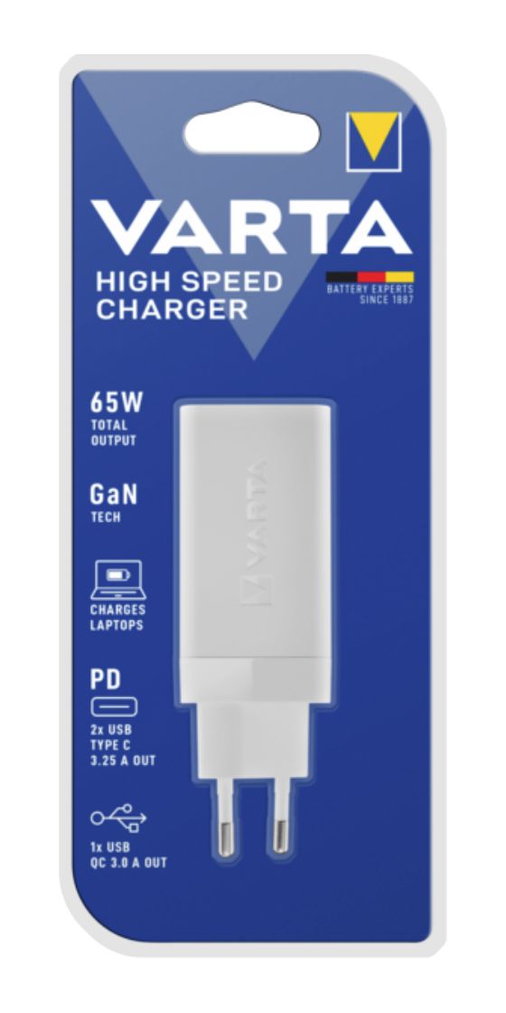 Varta 57956 101 401. Aufladetyp: Drinnen, Energiequelle: AC, Aufladekompatibilität: Universal, Anzahl USB 2.0 Anschlüsse: 1, USB Typ-C Anzahl Anschlüsse: 2, Schnellladung. Produktfarbe: Weiß