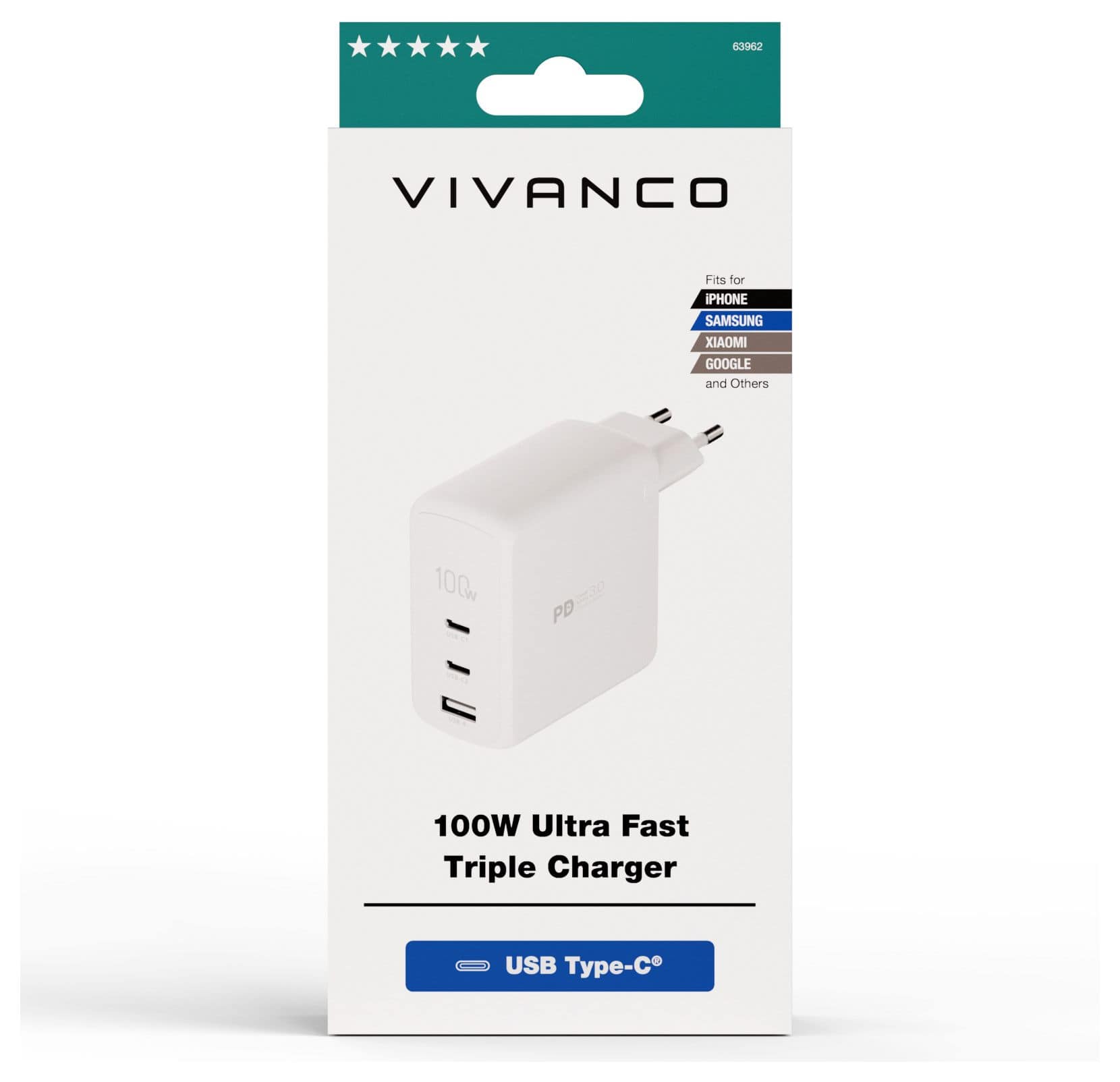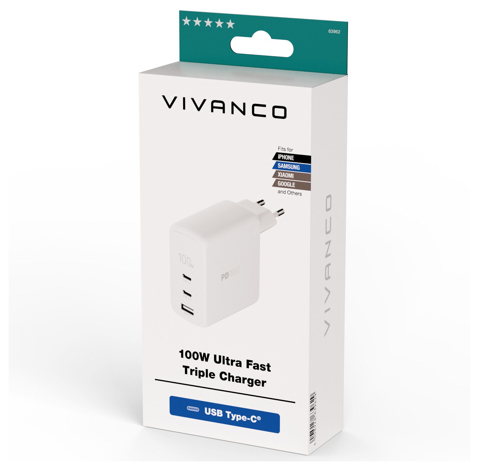 Power Delivery 3.0 Ultra Fast Dreifach Schnellladegerät 100W (Weiß)