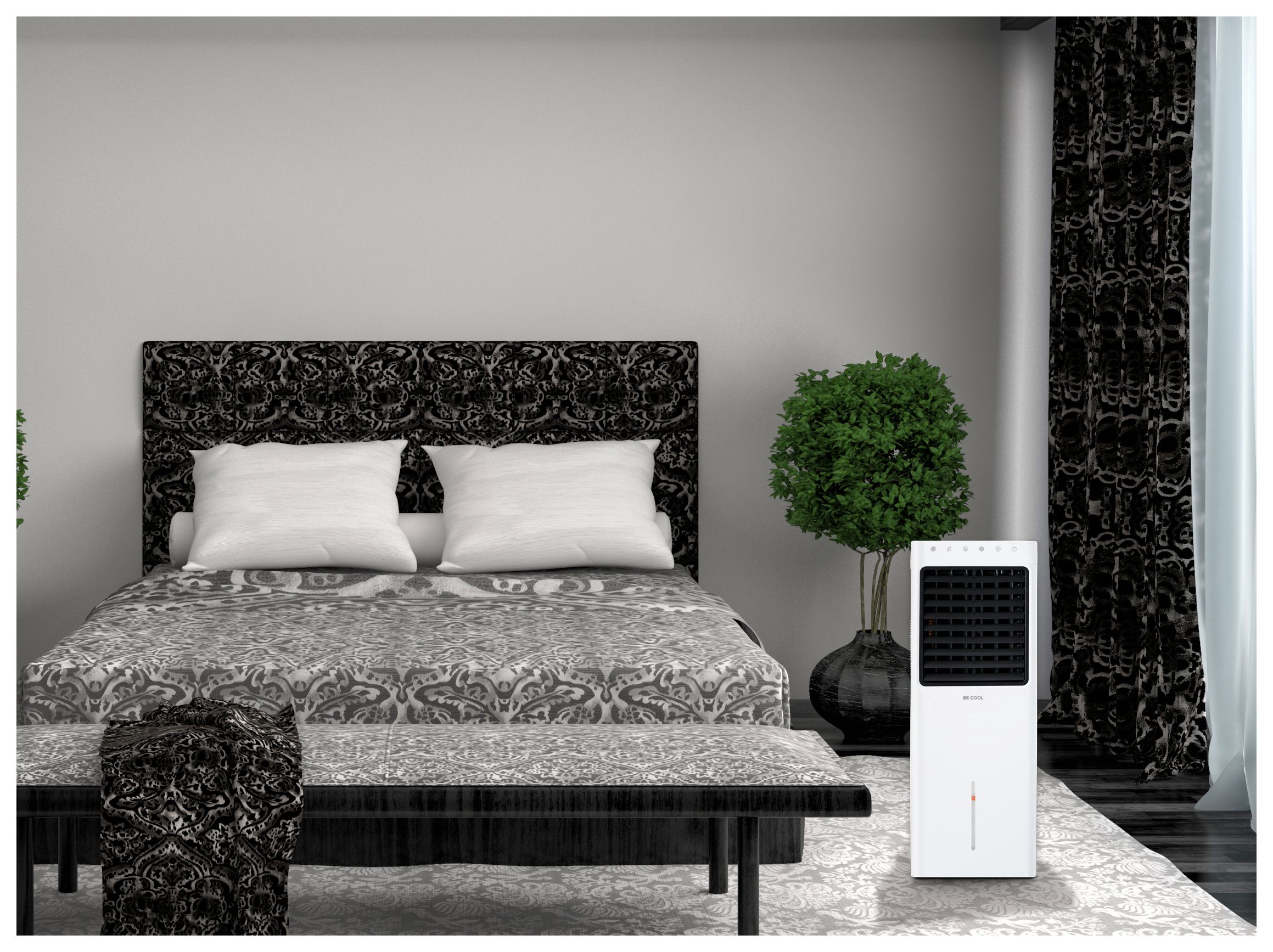 Unser Multitalent - der BE COOL BC9.3AC2201IKF - sorgt nicht nur für kühle Luft an heißen Tagen. Technisch bedingt wird die Luft gleichzeitig auch befeuchtet, gleichmäßig verteilt und lästige Insekten werden vertrieben.
