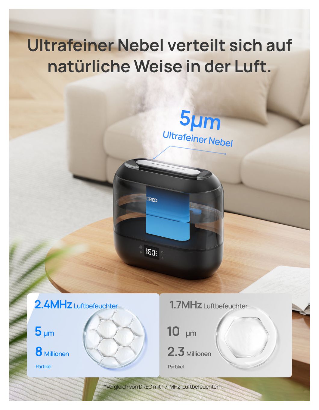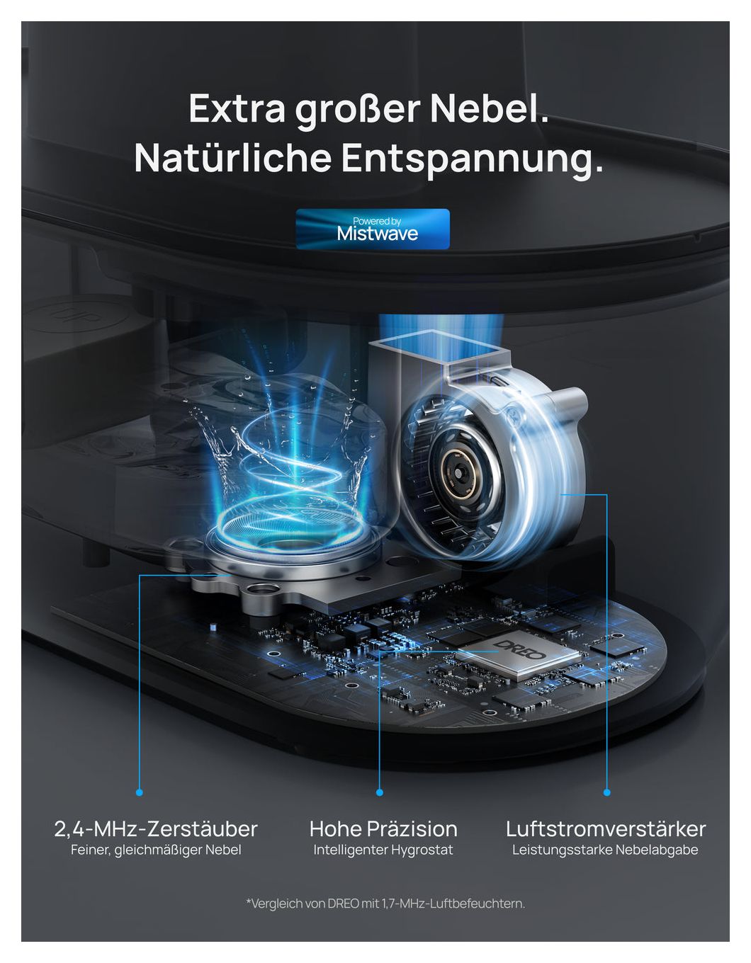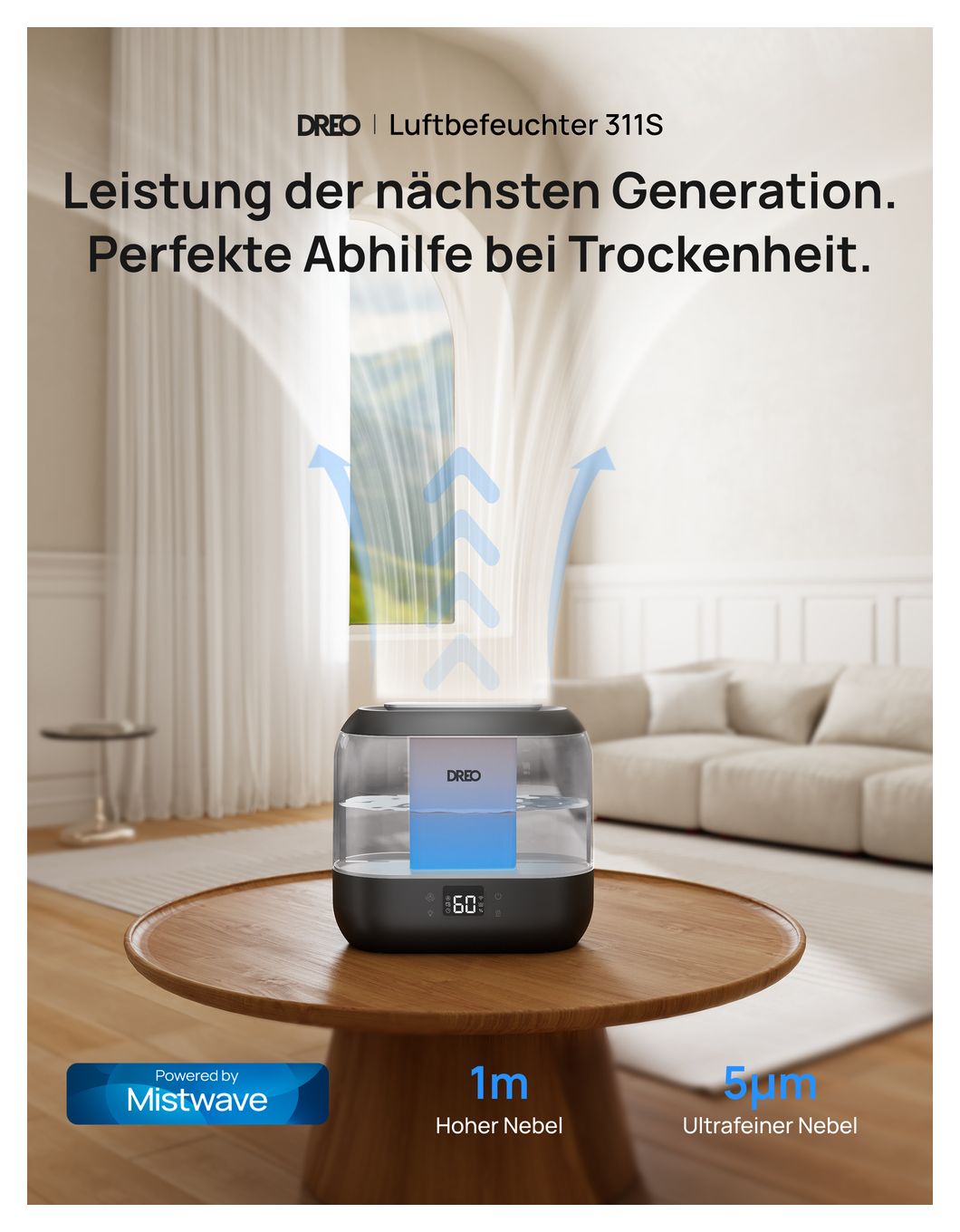 Dreo HM311S. Produktfarbe: Grau, Display-Typ: LED, Platzierung: Tisch. Breite: 280 mm, Tiefe: 140 mm, Höhe: 258 mm
