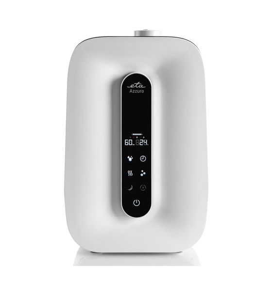Der Ultraschall-Luftbefeuchter ETA Azzuro ist ein unschätzbarer Helfer für die bequeme Haus-Atmosphäre. Die Anwendung findet er vor allem in der Heizperiode, aber auch außer ihr. Er kann den Wert der relativen Feuchtigkeit messen und dank der Funktion der Feuchtigkeitsregulierung kann er den Betrieb beim Erreichen des eingestellten Wertes abbrechen