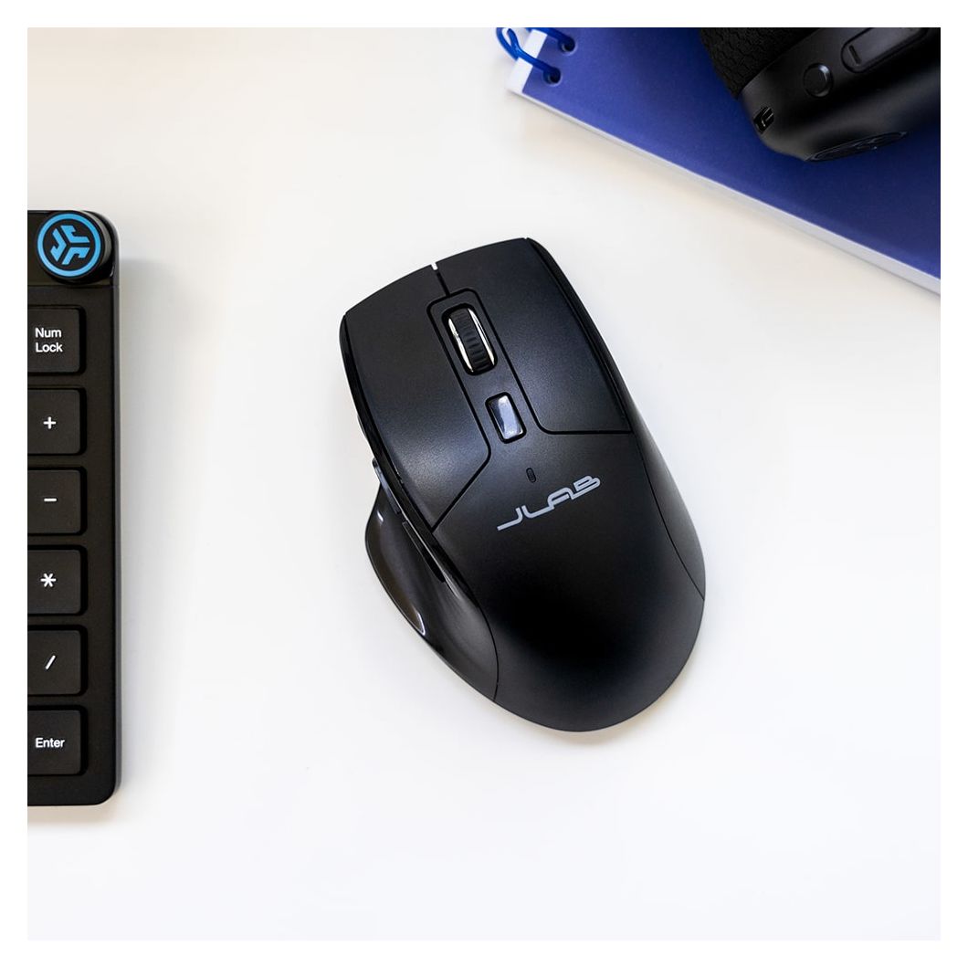 JLab JBuds. Formfaktor: rechts. Bewegungerfassungs Technologie: Optisch, Geräteschnittstelle: Bluetooth + USB Type-A, Bewegung Auflösung: 2400 DPI, Tastentyp: Gedrückte Tasten, Knopfanzahl: 7, Scroll Typ: Rad. Energiequelle: Batterien. Produktfarbe: Schwarz