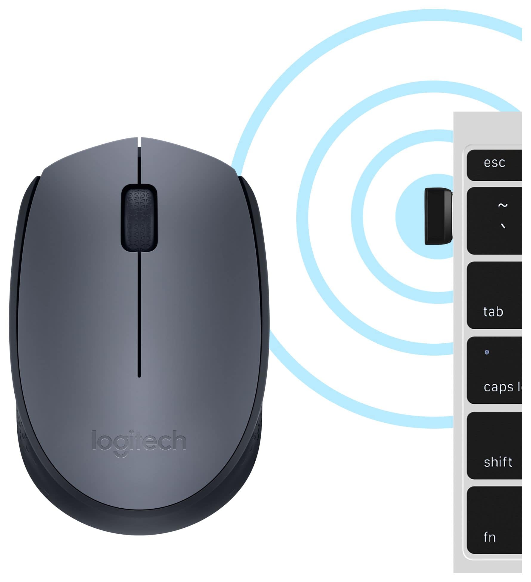 M170 Kabellose Maus, 2.4 GHz Verbindung via Nano-USB-Empfänger, Optischer Sensor, 3 Tasten, 12-Monate Akkulaufzeit, Für Links- und Rechtshänder, PC/Mac - Grau
