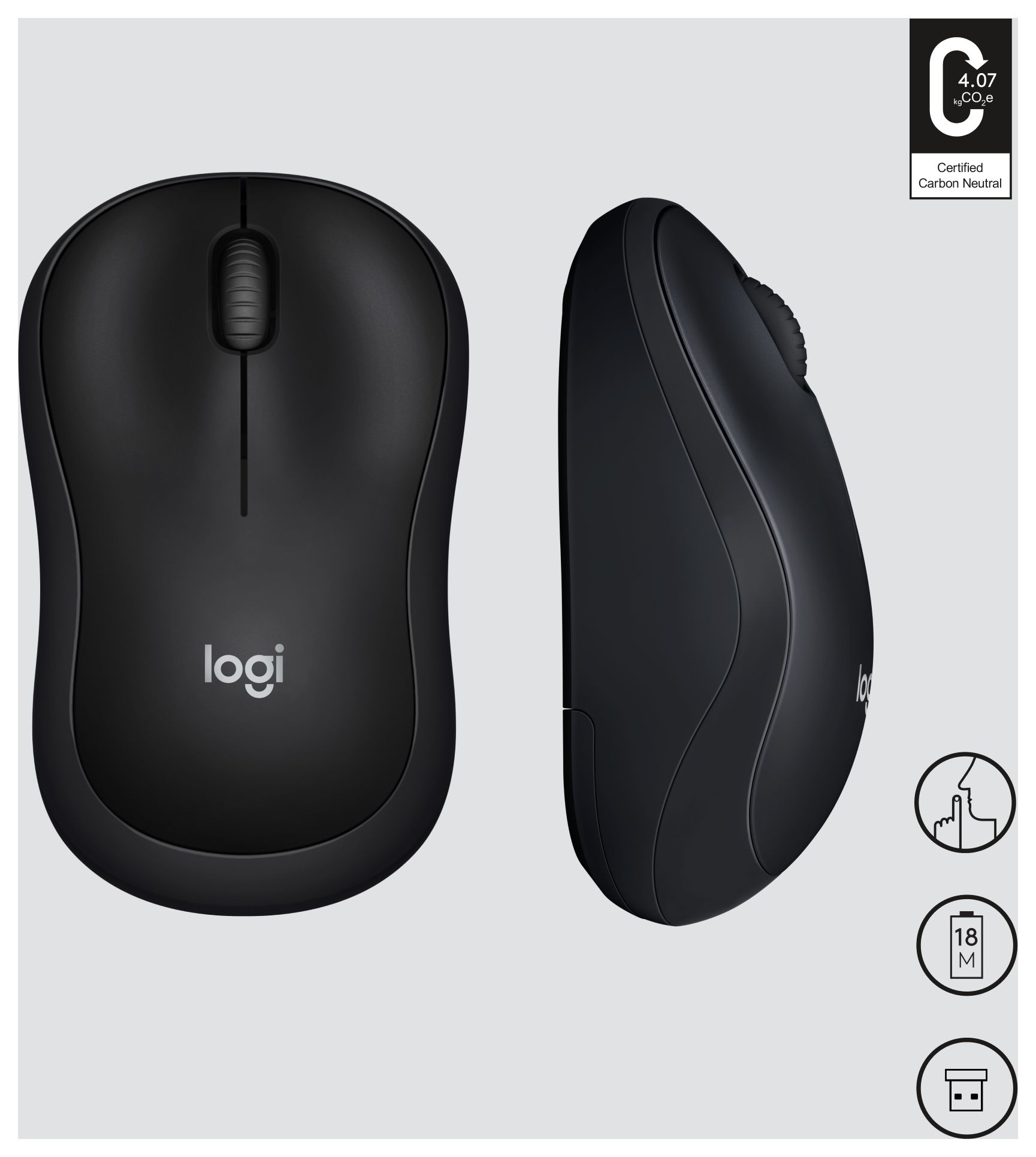 M220 SILENT Kabellose Maus, 2,4 GHz mit USB-Empfänger, 1000 DPI Optical Tracking, 18 Monate Batterielaufzeit, Für Links- & Rechtshänder, Kompatibel mit PC, Mac, Laptop
