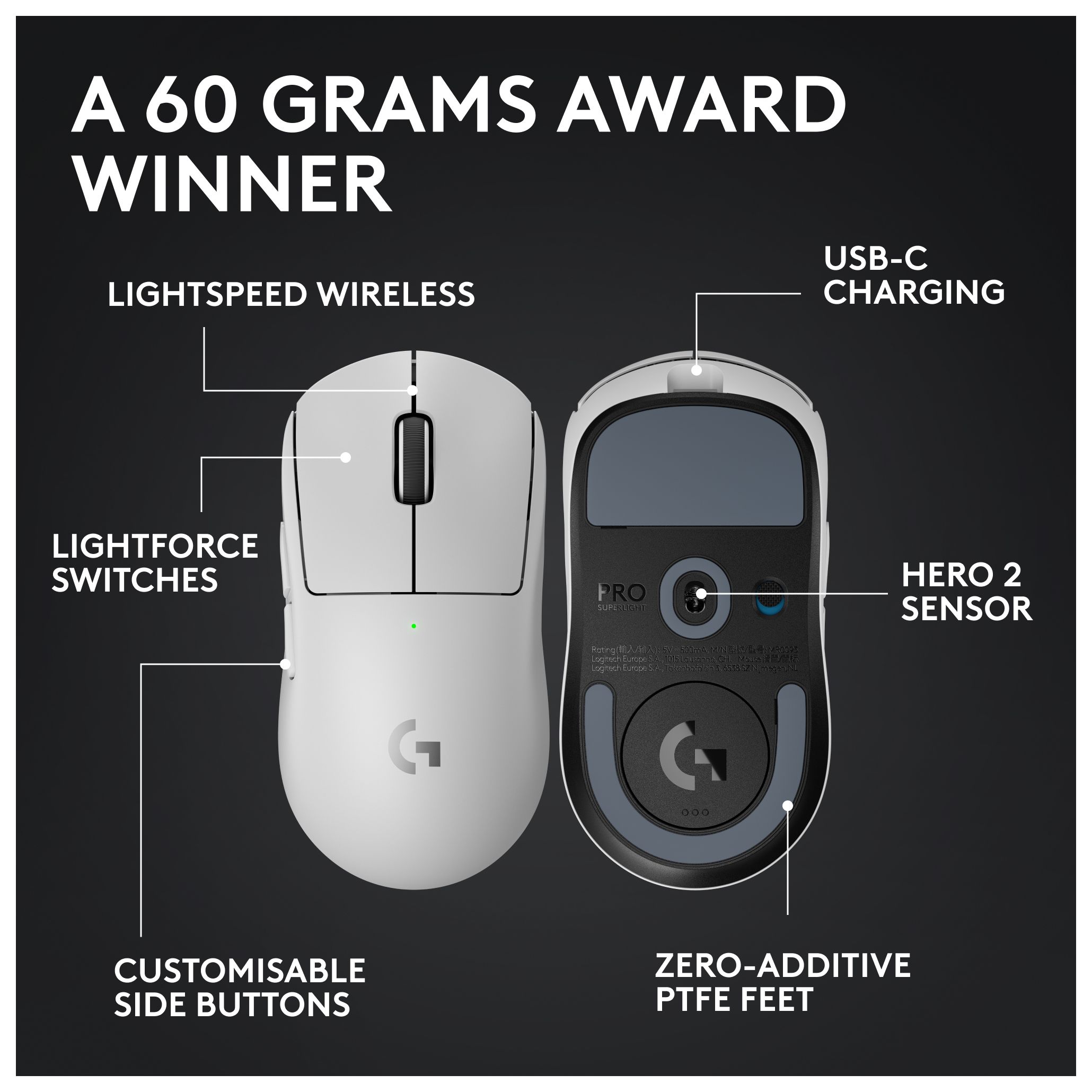 Pro X Superlight 2 32000 DPI Gaming Maus Optisch (Weiß)