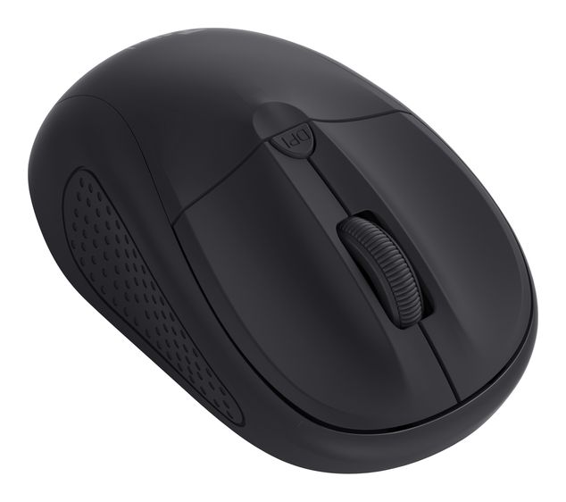 Trust Primo. Formfaktor: Beidhändig. Bewegungerfassungs Technologie: Optisch, Geräteschnittstelle: RF Wireless, Bewegung Auflösung: 1600 DPI, Tastentyp: Gedrückte Tasten, Knopfanzahl: 4, Scroll Typ: Rad. Energiequelle: Batterien. Produktfarbe: Schwarz
