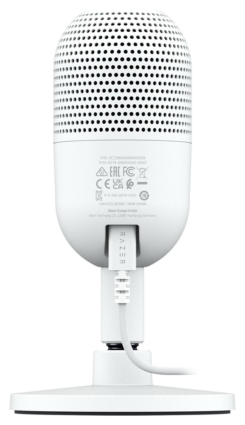 Razer RZ19-05050300-R3M1. Typ: Tischmikrofon, Mikrofon-Empfindlichkeit: 110 dB, Mikrofon-Frequenz: 20 - 20000 Hz. Übertragungstechnik: Kabelgebunden, Geräteschnittstelle: USB, USB-Stecker: USB Typ-C. Produktfarbe: Weiß, Vorgeschlagenes Geschlecht: Junge/Mädchen. Energiequelle: USB, Arbeitsspannung: 5 V, Energieverbrauch: 350 mA. Anzahl enthaltener Produkte: 1 Stück(e)