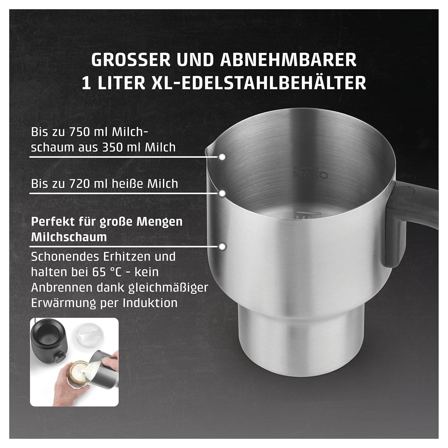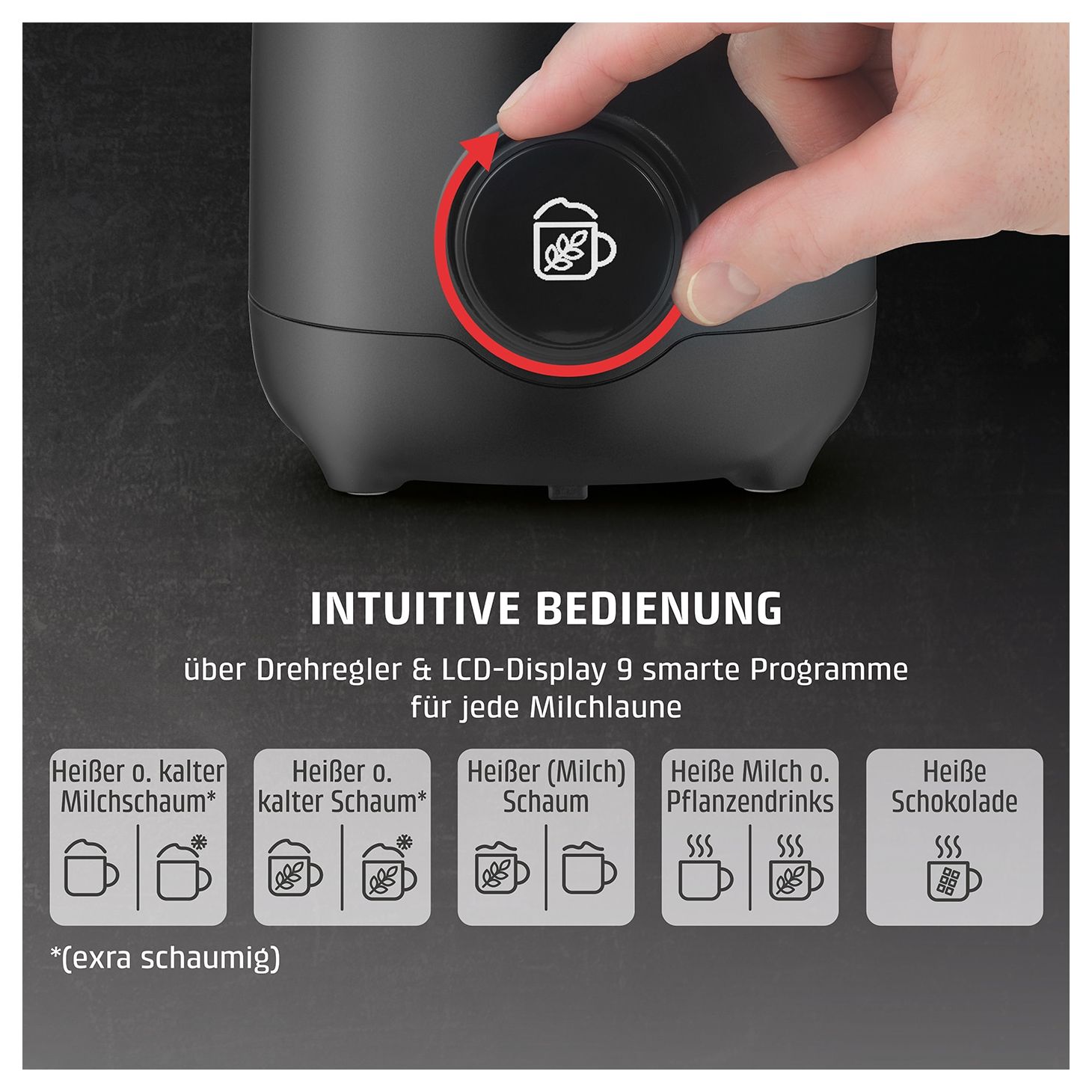 1667 PremiumLatte XL Milchaufschäumer Automatischer Milchaufschäumer/-wärmer ca. 350 ml (Schwarz, Edelstahl)
