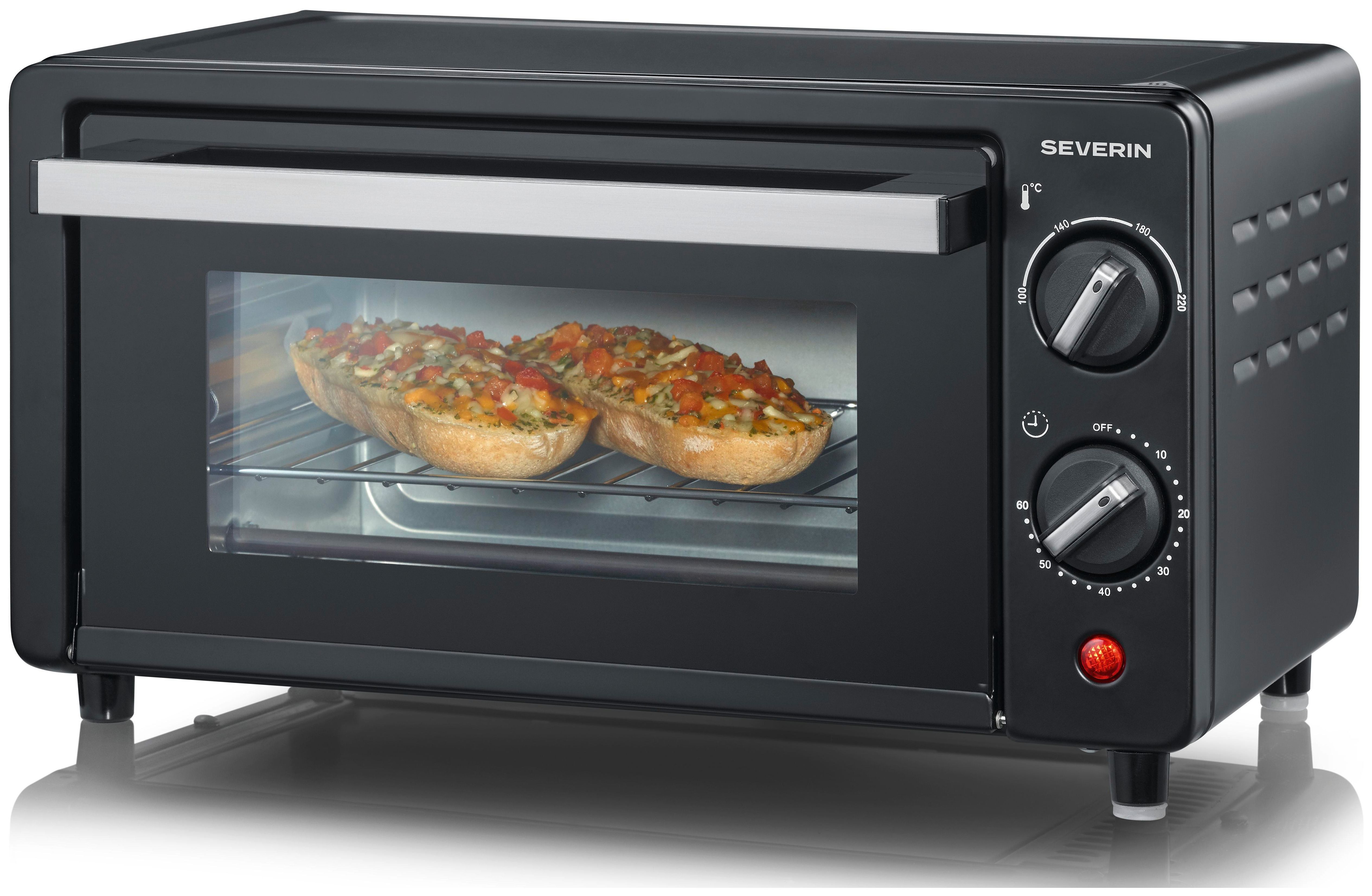 Back- und Toastofen, 9 L, 800 W, 100 - 220 °C, schwarz / silber / Kunststoff / Metall