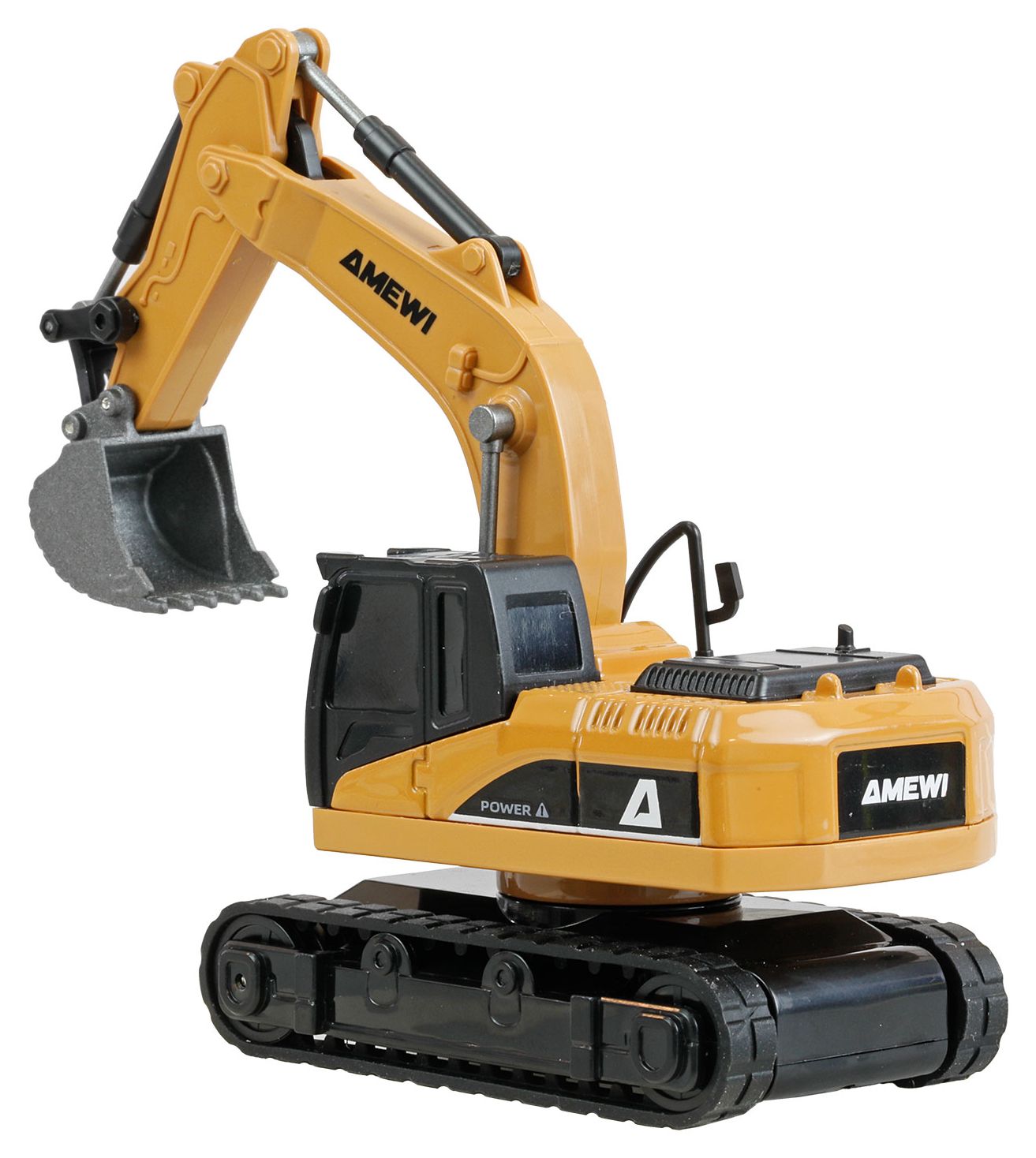 Der ferngesteuerte Mini-Bagger im Maßstab 1:64 sorgt für Spielspaß bei Kindern ab 6 Jahren und bringt ordentliche Baustellen-Action ins Kinderzimmer oder auf den Schreibtisch. So lassen sich kleine Baustellenszenen wunderbar nachstellen. Die griffigen Gummiketten gewährleisten einen sicheren Vortrieb und stabile Fahreigenschaften, während die Fernsteuerung mit einem störungsfreien 2,4GHz-System für präzise Kontrolle sorgt.