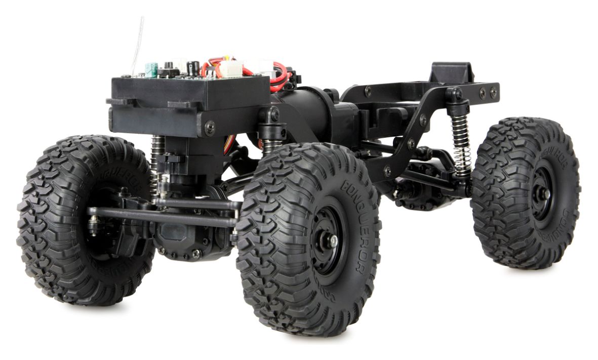 Die integrierte Gastrimmung kann auch als Tempomat genutzt werden und ermöglicht ein besonders präzises und entspanntes Crawlen, selbst auf anspruchsvollem Terrain. Mit seinem spritzwassergeschützten Gehäuse nach IPX4-Standard ist der Mini-D90 auch bei feuchten Bedingungen einsatzbereit. Der kraftvolle 4WD-Allradantrieb sorgt für optimale Traktion auf verschiedensten Untergründen, unterstützt durch eine Einzelradaufhängung, die für maximale Geländegängigkeit und Stabilität sorgt.