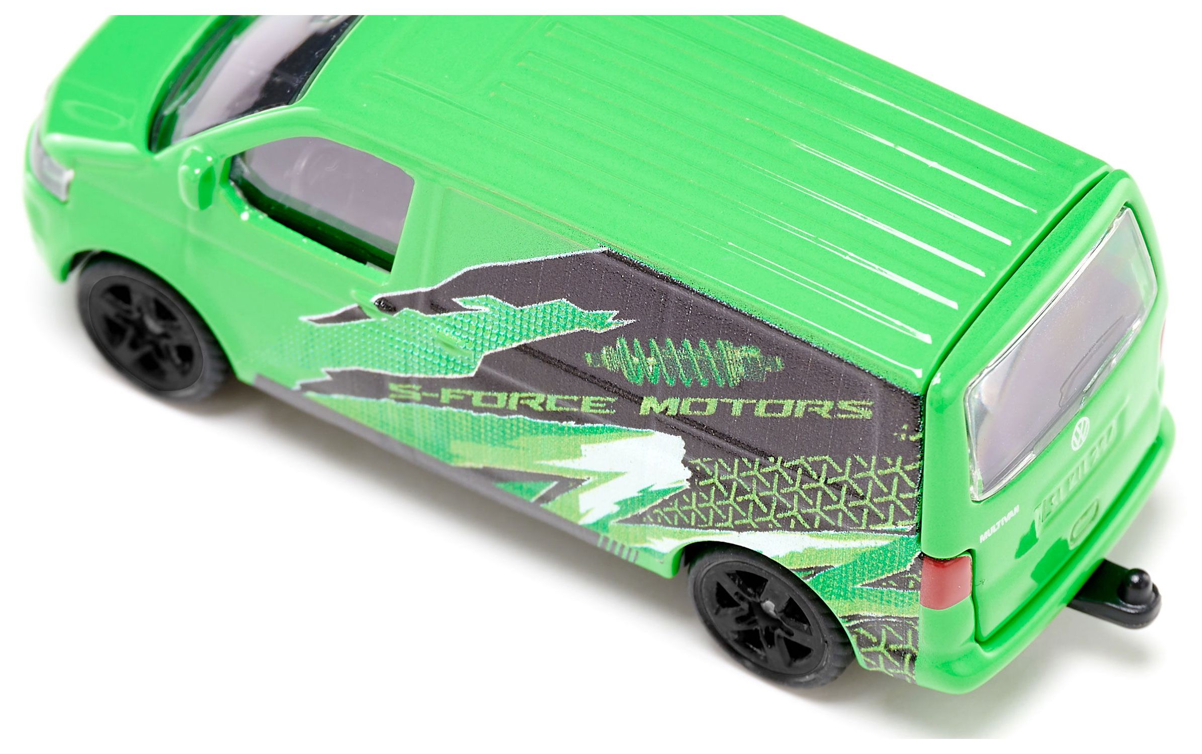 Die originalgetreuen Felgen mit gummierter Lauffläche, präzise eingesetzte Kunststoffscheinwerferleiste vorne und die imposante große Heckklappe machen dieses Fahrzeug zu einem absoluten Highlight. Das T5-Modell ist zudem mit einer Anhängerkupplung ausgestattet, was seine Vielseitigkeit und Einsatzmöglichkeiten noch weiter steigert.